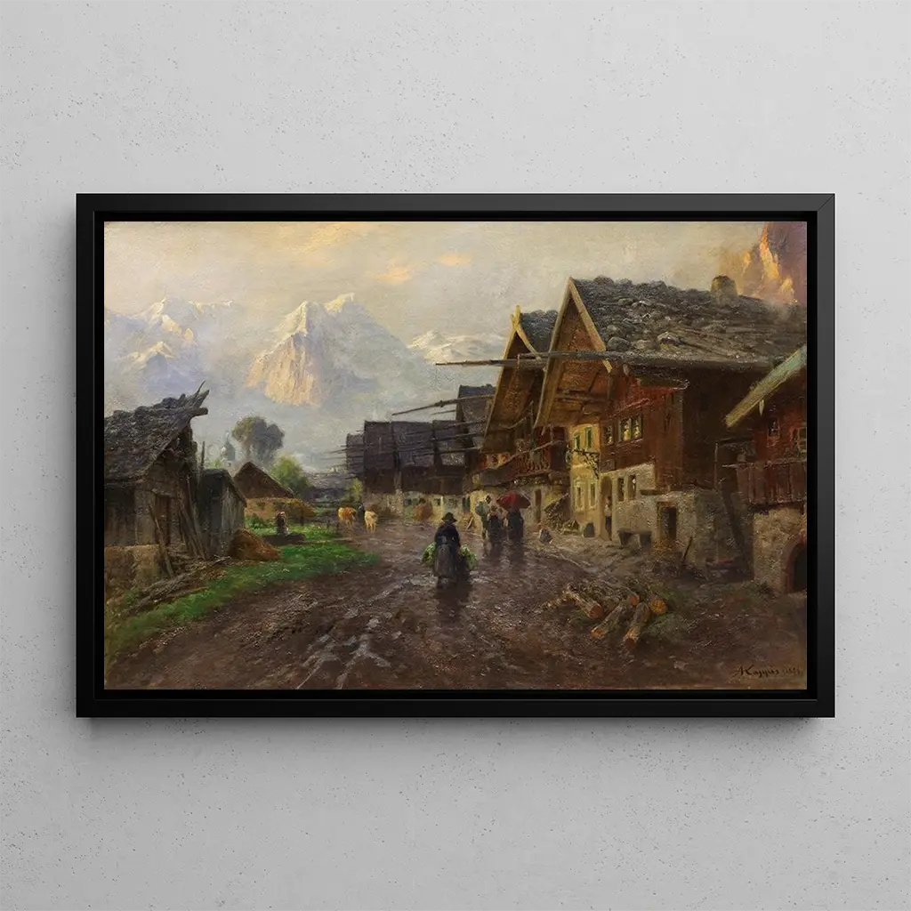 La Rue du Printemps à Garmisch is een levendig kunstwerk dat de zachtheid van een volle lente uitbeeldt. De pastelkleuren, variërend van zachte groenen tot heldere roze tinten, mengen harmonieus om een serene en vrolijke sfeer te creëren. De aquareltechniek, gebruikt door Albert Kappis, stelt je in staat om het licht en de transparantie van de bloemen vast te leggen, terwijl het levendige tafereel van voorbijgangers tot leven wordt gewekt. Elke penseelstreek lijkt te dansen op het doek en nodigt de kijker uit om zich onder te dompelen in deze lentewandeling, waar natuur en menselijkheid in perfecte harmonie samenleven.