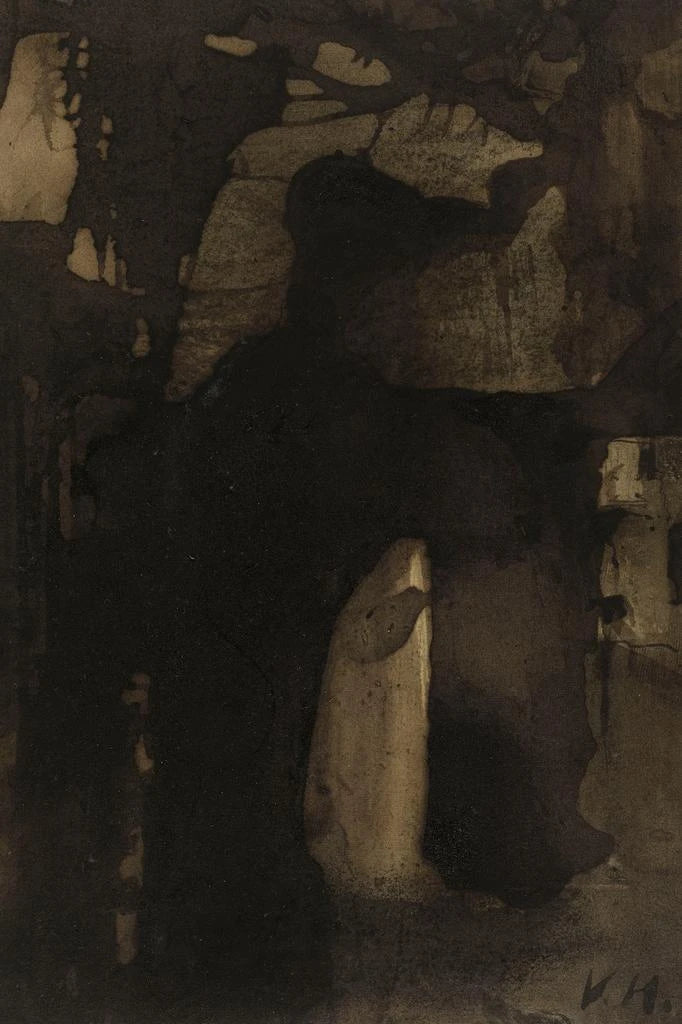 De kunstdruk van La Bouche d'ombre brengt ons in een wereld waar schaduwen en licht harmonieus dansen. De donkere, bijna mystieke kleuren mengen zich met lichtstreken die een emotionele diepte oproepen. De techniek van Victor Hugo, die tekenen en schilderen combineert, creëert een sfeer die zowel intrigerend als melancholisch is. Dit schilderij, een ware weerspiegeling van zijn getroebleerde ziel, nodigt ons uit om de donkere hoeken van ons eigen bestaan te verkennen, terwijl het ons een poëtische visie op de menselijke natuur biedt.