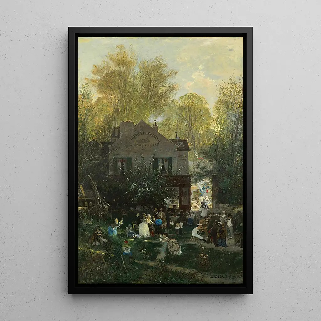 Luigi Loir, Franse schilder uit de 19e eeuw, staat bekend om zijn levendige weergaven van het Parijse leven. Actief tijdens de Belle Époque, wist hij de geest van zijn tijd vast te leggen door middel van zijn werken. Geïnspireerd door het impressionisme ontwikkelde Loir een unieke stijl, die realisme combineert met lichteffecten, waardoor hij zich onderscheidde onder zijn tijdgenoten. Zijn schilderijen, zoals In de rendez-vous van de kanoërs, getuigen van een periode waarin Parijs op zijn hoogtepunt was en kunstenaars en intellectuelen van over de hele wereld aantrok. Zijn werk is een waardevolle erfenis die blijft inspireren en verwonderen.