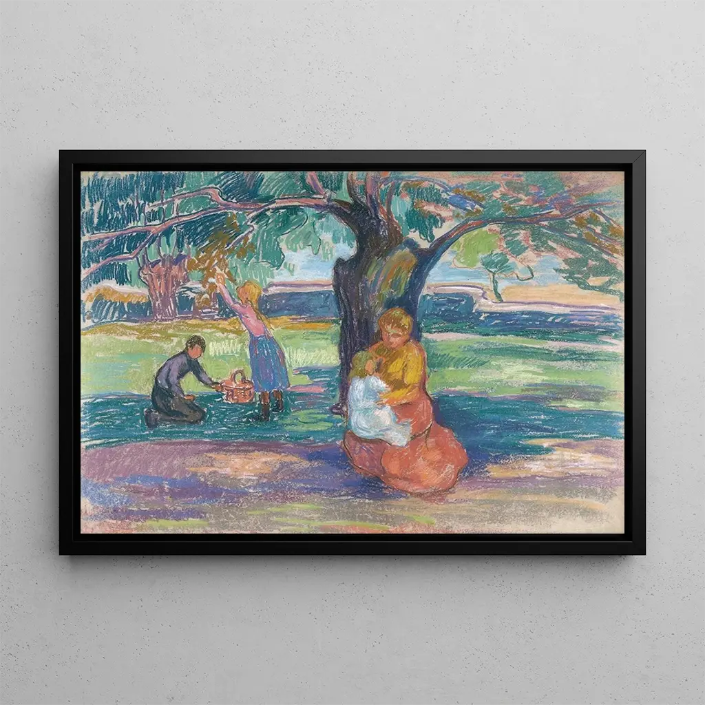La Moisson : een eerbetoon aan het landelijke leven La Moisson, een kunstdruk van Jean Peske, roept de schoonheid van het agrarische landschap op door een levendige voorstelling van de oogst. De gouden velden, badend in licht, contrasteren met de blauwe hemel en creëren een sfeer van volheid en sereniteit. Peske gebruikt rijke kleuren en schildertechnieken die de beweging van de boeren tijdens het werk vastleggen, en brengt zo een eerbetoon aan de natuur en de menselijke inspanning. Deze kunstdruk van La Moisson nodigt de kijker uit om de eenvoud en schoonheid van het landelijke leven te waarderen, terwijl het de cyclus van de seizoenen viert. Jean Peske : een meester van het landelijke landschap Jean Peske, een Franse schilder uit de 19e eeuw, wordt erkend om zijn idyllische landschappen en scènes uit het boerenleven. Opgegroeid in een landelijke omgeving, werd Peske diep beïnvloed door de natuur die hem omringde. Zijn stijl, vaak geassocieerd met het realisme, benadrukt de schoonheid van alledaagse scènes, terwijl hij een bijzondere gevoeligheid voor details toont. La Moisson is een van zijn meest iconische werken, dat zijn vaardigheid illustreert om de essentie van het leven op het platteland vast te leggen en zijn toewijding aan een authentieke weergave van de natuur. Een decoratief stuk met vele voordelen De kunstdruk van La Moisson is een charmante toevoeging aan elk interieur, of het nu een woonkamer, keuken of kantoor betreft. De afdrukkwaliteit garandeert een perfecte fideliteit aan de nuances en texturen van het originele werk, waardoor u volop kunt genieten van Peske’s artistieke visie. Met zijn warme en uitnodigende sfeer creëert dit doek een rustgevende en inspirerende ambiance. Door voor dit werk te kiezen, brengt u een vleugje natuur en authenticiteit in uw ruimte, waardoor uw dagelijkse omgeving wordt verrijkt.