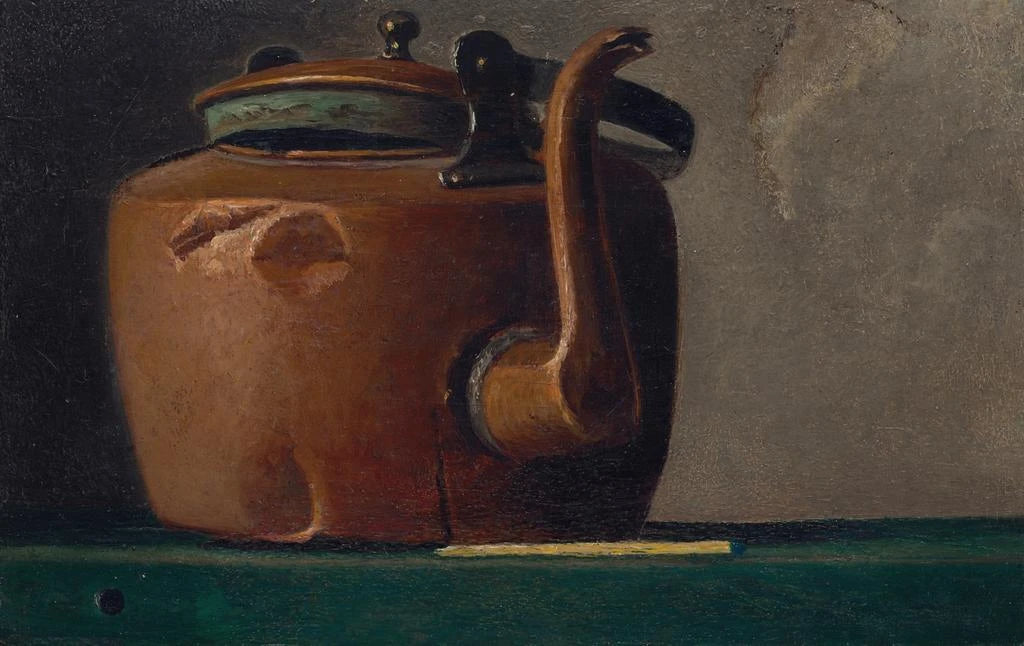 John Frederick Peto, Amerikaanse kunstenaar uit de 19e eeuw, is vooral bekend om zijn kunstdrukken die alledaagse voorwerpen met opmerkelijke precisie vastleggen. Geïnspireerd door de realistische beweging, heeft Peto een stijl ontwikkeld die technische perfectie combineert met artistieke gevoeligheid. Zijn carrière, hoewel minder bekend dan die van zijn tijdgenoten, heeft een blijvende indruk achtergelaten op de Amerikaanse kunst, vooral door zijn vermogen om banale elementen om te toveren tot onderwerpen die de moeite waard zijn. "De Oude Waterkoker" is een perfect voorbeeld van zijn talent, dat getuigt van zijn aandacht voor detail en respect voor de schoonheid van het dagelijks leven.