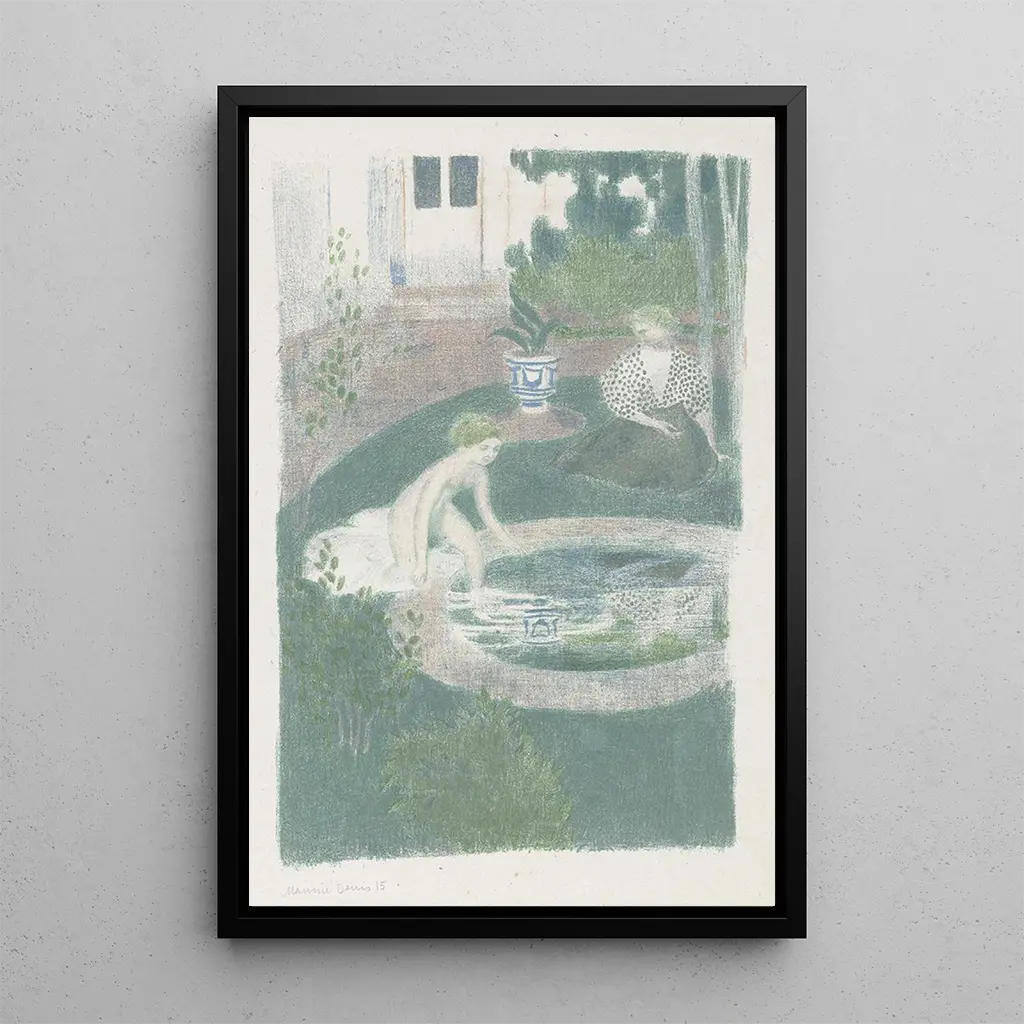 De kunstdruk van De reflectie in de fontein van Maurice Denis roept een scène op die doordrenkt is van rust en schoonheid. De levendige kleuren en de gestileerde vormen combineren om een boeiende compositie te creëren, waarin natuur en architectuur elkaar in perfecte harmonie ontmoeten. De techniek van Denis, gekenmerkt door vlakke kleurvlakken en vloeiende lijnen, brengt dit werk tot leven en nodigt de kijker uit om onder te dompelen in een wereld van droom en sereniteit. De fontein, spiegel van de omringende natuur, wordt een symbool van vrede en contemplatie.