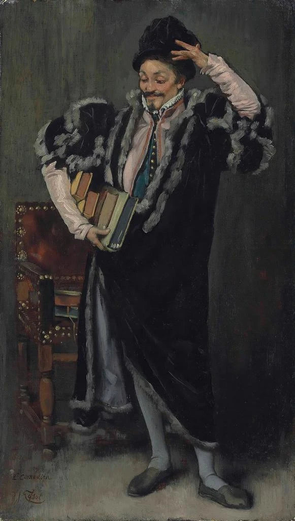James Tissot, peintre français du XIXe siècle, est reconnu pour sa capacité à immortaliser des scènes de la vie quotidienne avec un sens aigu du détail et une palette de couleurs raffinée. Influencé par le mouvement impressionniste, Tissot a su se démarquer par son style unique, mêlant réalisme et une touche de romantisme. Sa carrière a été marquée par des voyages à Londres et en France, où il a capturé la haute société et ses mœurs. "Le Deuxième Comédien" s'inscrit dans une période où le théâtre et les arts de la scène prenaient une place prépondérante dans la culture, reflétant les préoccupations et les passions de son temps.