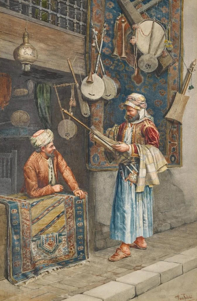 Schilderij De Muziekinstrumentenverkoper - Paolo Folchi | Kunstdruk