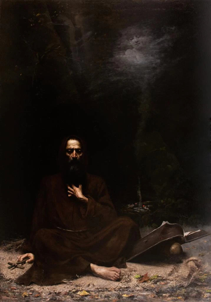 Schilderij La tentation de Saint Antoine - Lucjan Wydrychowski | Kunstdruk
