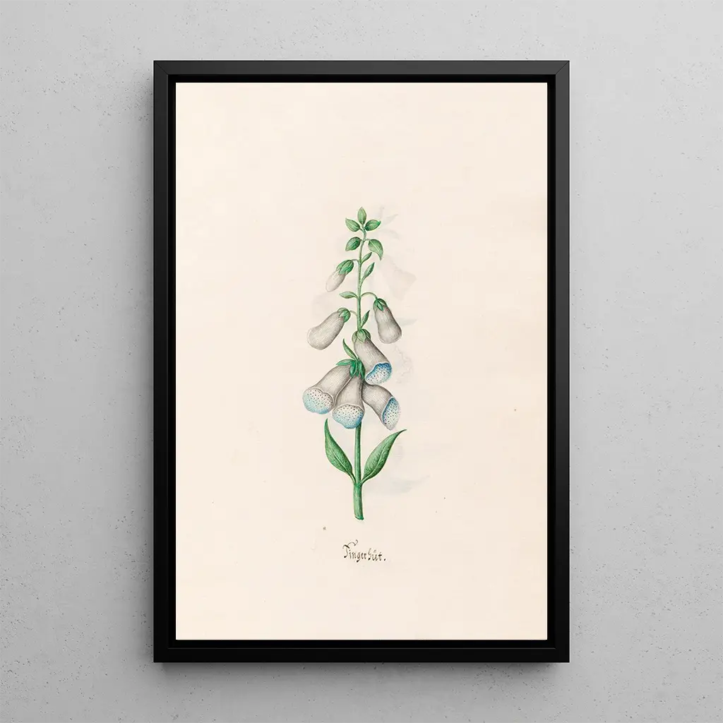De kunstdruk Digitale van Magdalena Rosina Funck dompelt ons onder in een bloemrijk universum waar elk detail lijkt te vibreren van leven. De levendige kleuren, variërend van delicate rozen tot weelderige groenen, creëren een sfeer die zowel rustgevend als dynamisch is. De techniek van de kunstenaar, die behendig aquarel en tekening combineert, geeft een lichte uitstraling aan het geheel, alsof de bloemen op het punt staan te vliegen. Dit kunstwerk nodigt uit tot contemplatie, ontsnapping en roept de vergankelijke schoonheid van de natuur op, vastgelegd met een zeldzame fijnheid.