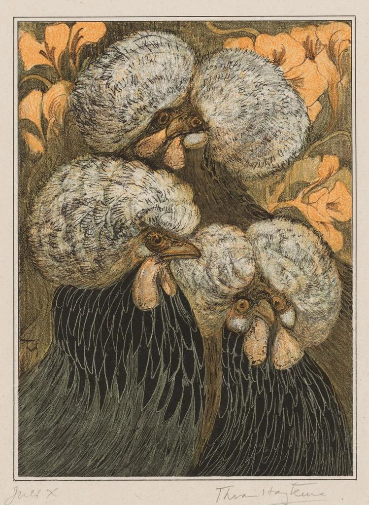 Schilderij Trois poules huppées - Theo van Hoytema | Kunstdruk