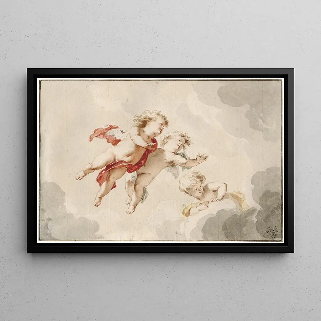 La reproduction de "Trois putti volants" s'avère être un choix décoratif idéal pour divers espaces tels que le salon, le bureau ou la chambre. Sa palette douce et ses motifs enchanteurs apportent une touche de sérénité et d'élégance à n'importe quel intérieur. La qualité de la reproduction garantit une fidélité remarquable à l'œuvre originale, permettant de profiter de son attrait esthétique sans compromis. En intégrant cette toile dans votre décoration, vous offrez à votre espace une note artistique raffinée, tout en suscitant l'admiration de vos invités.