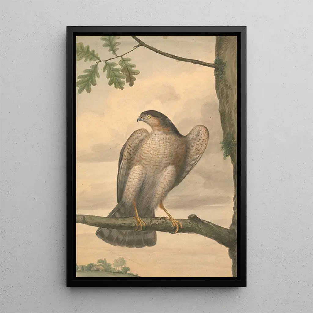 De kunstdruk van de Épervier d'Europe door James Sowerby is een indrukwekkend kunstwerk dat de kracht en schoonheid van deze roofvogel illustreert. De aardse kleuren, gemengd met nuances van grijs en bruin, roepen de majesteit van zijn verenkleed op. De trotse houding van de kunstdruk, vastgelegd met opmerkelijke precisie, geeft een gevoel van kracht en vastberadenheid weer. Dit doek, zowel realistisch als poëtisch, nodigt de kijker uit om de pracht van de wilde fauna te bewonderen en de minutieuze arbeid van de kunstenaar te waarderen.