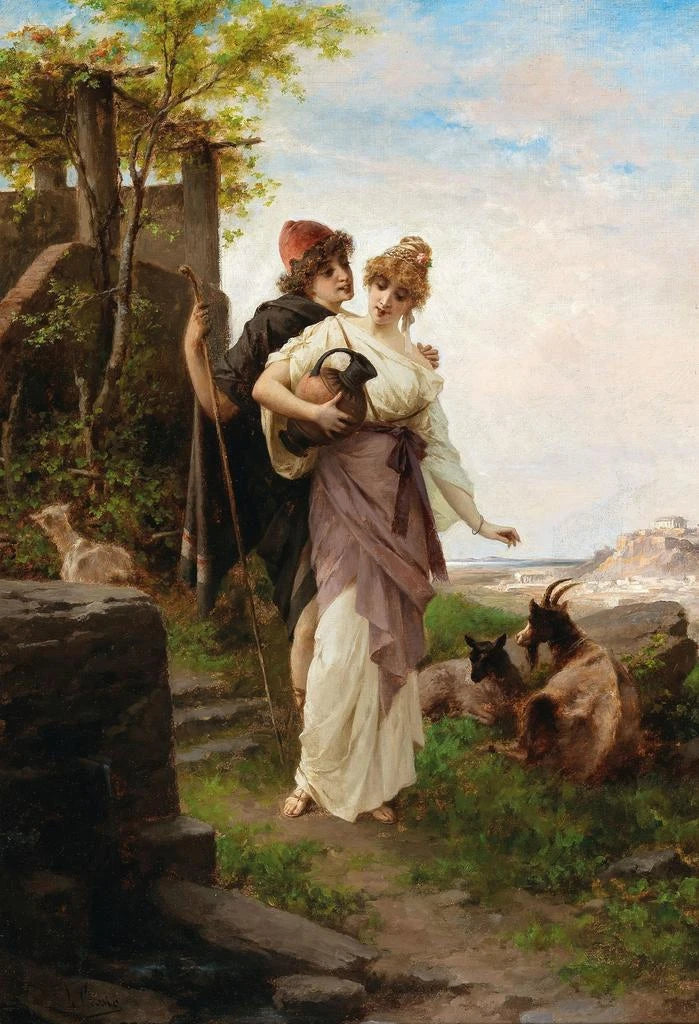 Luigi Crosio, schilder uit de 19e eeuw, wordt erkend om zijn vaardigheid om het dagelijks leven vast te leggen met een vleugje romantiek. Geïnspireerd door de realistische beweging, wist hij technische precisie en emotionele gevoeligheid te combineren in zijn werken. Actief tijdens een periode van sociale en artistieke omwentelingen in Italië, wist Crosio de aspiraties van zijn tijd te weerspiegelen door scènes van het landelijke leven. Zijn schilderijen, zoals "Een boerentafereel bij de fontein", getuigen van zijn talent om eenvoudige geluksmomenten te vereeuwigen, terwijl hij een subtiele kritiek op de samenleving biedt.
