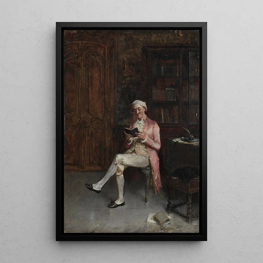 In deze kunstdruk van Een filosoof vangt Walter Gay de essentie van intellectuele contemplatie. Het doek, doordrenkt met warme tinten bruin en goud, roept een sfeer van sereniteit en diepgang op. Het centrale personage, verdiept in zijn gedachten, wordt omringd door symbolische objecten die het idee van kenniszoek versterken. De techniek van Gay, die realisme combineert met impressionistische accenten, creëert een subtiel lichtspel dat de blik trekt en uitnodigt tot nadenken. Elk detail, van de plooien in de jurk van de filosoof tot de schaduwen die op de muur worden geprojecteerd, draagt bij aan een meeslepende en poëtische sfeer.