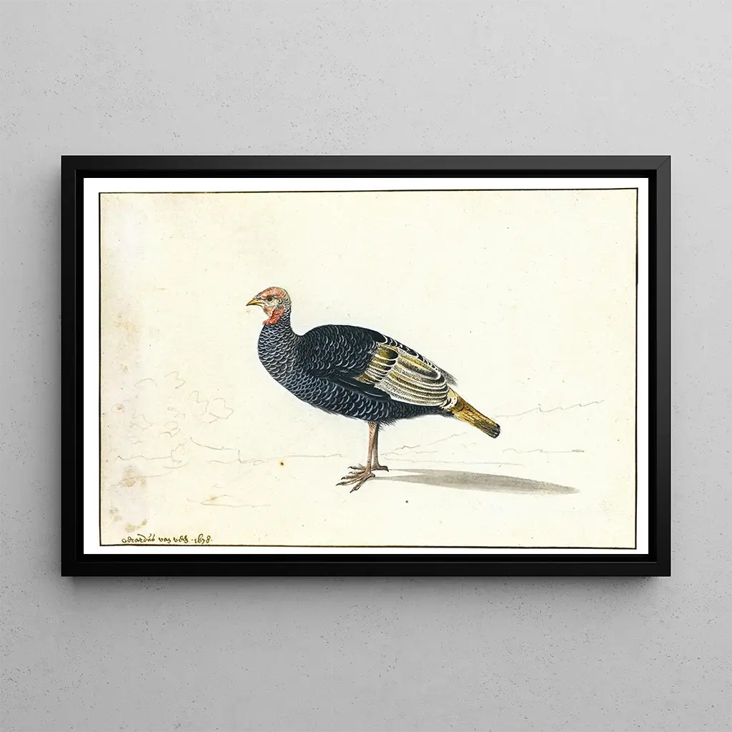 Een kalkoen: een eerbetoon aan de natuur en eenvoud. In deze kunstdruk van Een kalkoen dompelt Gerardus van Veen ons onder in een landelijk wereldje vol sereniteit. Dit schilderij, met zijn aardetinten en delicate nuances, roept de schoonheid op van alledaagse scènes op het platteland. Van Veen's techniek, die realisme combineert met een vleugje zachtheid, maakt het mogelijk de gratie van dit dier vast te leggen, symbool van de gedomesticeerde natuur. De rustgevende sfeer die uit het werk straalt, nodigt de kijker uit om de eenvoud en schoonheid van gewone dingen te waarderen, terwijl het een eerbetoon brengt aan het landelijke leven. Gerardus van Veen: een meester in dierenrealisme. Gerardus van Veen, Nederlandse schilder uit de zeventiende eeuw, wordt erkend om zijn werken die dieren en scènes uit het landelijke leven weergeven. Zijn stijl, gebaseerd op realisme, getuigt van een minutieuze observatie van de natuur en het gedrag van dieren. Van Veen was beïnvloed door de Vlaamse meesters, en zijn werk maakt deel uit van een artistieke traditie die de getrouwe weergave van het dagelijks leven waardeert. Door zijn schilderijen biedt hij een inkijkje in het leven van toen, terwijl hij de schoonheid van de wezens om ons heen viert. Zijn nalatenschap blijft voortleven, en inspireert kunstliefhebbers om de eenvoud en rijkdom van de natuur opnieuw te ontdekken. Een decoratief stuk met vele voordelen. De kunstdruk van Een kalkoen is een perfecte decoratieve keuze om een rustieke en warme sfeer aan uw interieur toe te voegen. Of het nu in een keuken, woonkamer of kantoor is, dit schilderij trekt de aandacht en creëert tegelijkertijd een uitnodigende ambiance. De kwaliteit van de afdruk en de aandacht voor details maken het een kunstwerk dat liefhebbers van natuur en eenvoud zeker zal aanspreken. Door dit werk in uw decoratie te integreren, voegt u een artistieke dimensie toe die de rust van het landelijke leven oproept, terwijl u uw woonruimte verrijkt met een vleugje authenticiteit en charme.
