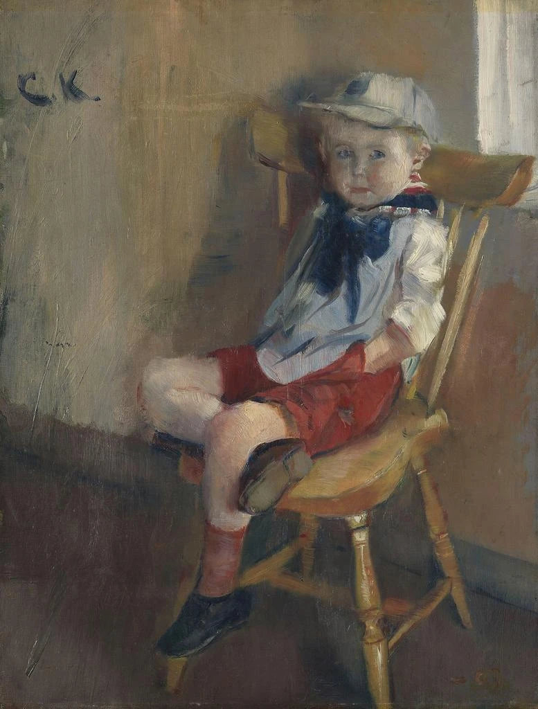 Kunstdruk Een klein jongetje op een stoel - Christian Krohg | Kunstdruk