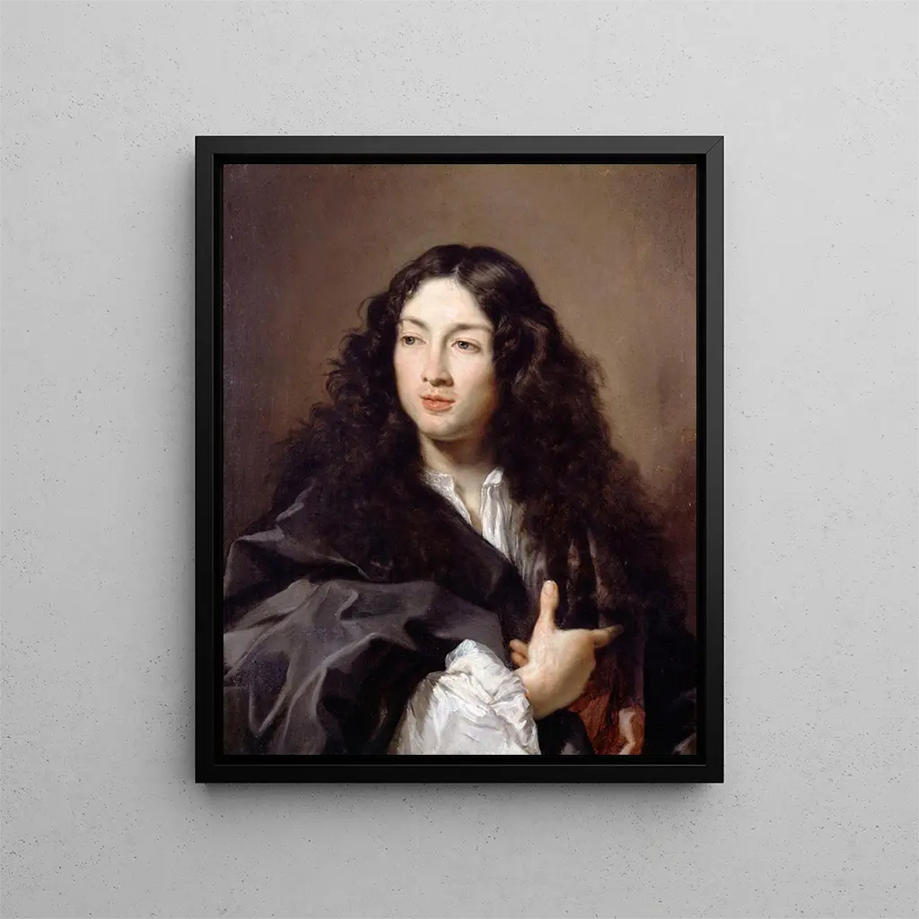 Kunstdruk Een man genaamd Michel Baron - Claude Lefebvre – Boeiende introductie In het fascinerende universum van de Franse kunst uit de zeventiende eeuw onderscheidt "Een man genaamd Michel Baron" van Claude Lefebvre zich door zijn diepgang en verfijning. Dit werk, dat niet alleen de uitstraling van een man vastlegt maar ook de essentie van zijn karakter, dompelt ons onder in een tijdperk waarin portret niet slechts een middel tot representatie was, maar een ware weerspiegeling van persoonlijkheid en sociale status. Lefebvre, met zijn vaardigheid om te spelen met licht en schaduw, slaagt erin een intieme sfeer te creëren die de kijker uitnodigt om het onderwerp te bekijken voorbij zijn eenvoudige uiterlijk. Stijl en uniekheid van het werk De stijl van Claude Lefebvre wordt gekenmerkt door een realistische benadering, vermengd met een barokke gevoeligheid die hem eigen is. In "Een man genaamd Michel Baron" is elk detail zorgvuldig bedacht om een indruk van levendigheid en dynamiek over te brengen. De gelaatstrekken, fijn geslepen, getuigen van een opmerkelijke technische beheersing, terwijl de keuze van kleuren, zowel rijk als genuanceerd, een levendige palet oproept die het licht op een bijna magische manier vangt. Lefebvre beperkt zich niet tot het reproduceren van een gezicht; hij slaagt erin een aura van waardigheid en ernst aan zijn onderwerp toe te voegen, waardoor een emotionele connectie met de kijker ontstaat. Dit werk belichaamt de essentie van het klassieke portret, waarbij elk element, van de plooi van de kleding tot de houding van het model, bijdraagt aan een boeiend visueel verhaal. De kunstenaar en zijn invloed Claude Lefebvre, een iconische figuur in de Franse portretkunst, wist zich te vestigen in een artistieke wereld die werd gedomineerd door meesters zoals Philippe de Champaigne en Charles Le Brun. Zijn vermogen om realisme en psychologische gevoeligheid te combineren, markeerde zijn tijd en beïnvloedde vele kunstenaars die hem opvolgden. Lefebvre, als hofkunstenaar, profiteerde ook van de opkomst van koninklijk mecenaat, wat hem in staat stelde zijn stijl verder te ontwikkelen en nieuwe technieken te verkennen. Zijn werk "Een man genaamd Michel Baron" is het resultaat van een tijdperk waarin het portret een middel was om de adel te verheerlijken en de geest van een tijd vast te leggen. Door een man te vereeuwigen, beperkt Lefebvre zich niet tot een eenvoudige stijl oefening, maar