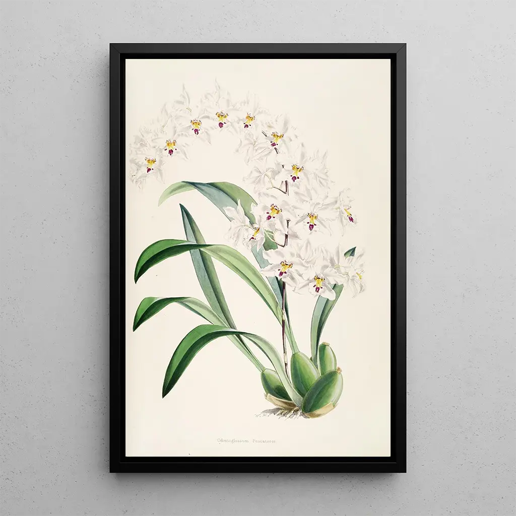 Une monographie d'Odontoglossum Pl04 : un éclat de nature exubérante La kunstdruk d'Odontoglossum Pl04 est une véritable ode à la beauté florale. Ce tableau vibrant, réalisé avec des couleurs riches et des détails minutieux, capture l'essence même de l'orchidée Odontoglossum. Les nuances de vert, de jaune et de violet se mêlent harmonieusement, créant une atmosphère à la fois apaisante et dynamique. La technique de l'aquarelle, utilisée avec finesse, permet de rendre la délicatesse des pétales tout en donnant vie à la composition. Cette œuvre invite le spectateur à plonger dans un univers floral luxuriant, où chaque détail semble raconter une histoire. James Bateman : un pionnier de l'art botanique James Bateman, botaniste et artiste du XIXe siècle, a su marier science et art dans ses œuvres. Influencé par le mouvement victorien, il a consacré sa vie à l'étude des plantes exotiques, en particulier des orchidées. Son travail a été marqué par une volonté de rendre hommage à la diversité de la nature, tout en éduquant le public sur les merveilles botaniques. Bateman a également joué un rôle clé dans la popularisation des orchidées en Europe, contribuant à leur statut d'objets de collection prisés. Sa passion pour la botanique et son talent artistique font de lui une figure incontournable de l'art floral. Une acquisition décorative aux multiples atouts Opter pour une reproduction d'Odontoglossum Pl04, c'est choisir une pièce décorative qui saura embellir n'importe quel espace. Que ce soit dans un salon, un bureau ou une chambre, ce tableau apporte une touche de fraîcheur et d'élégance. Sa qualité d'impression garantit une fidélité remarquable aux couleurs et aux détails de l'œuvre originale, tout en offrant un attrait esthétique indéniable. Cette toile se marie parfaitement avec divers styles d'intérieur, allant du classique au contemporain, et s'impose comme un élément central de décoration, suscitant admiration et contemplation.