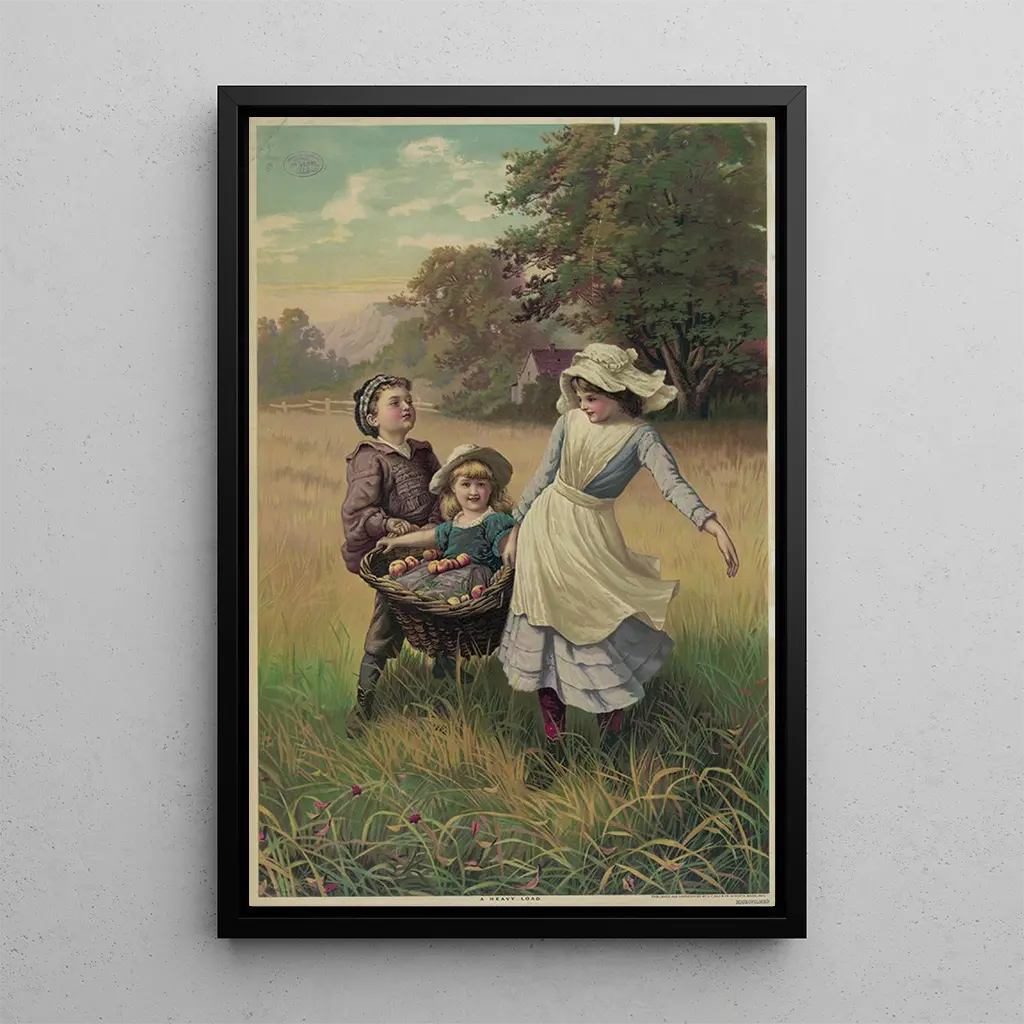 De kunstdruk van "Een zware last" biedt een indrukwekkend beeld van de strijd en de menselijke veerkracht. Dit werk toont personages die lasten dragen, symboliserend de uitdagingen en de worstelingen van het dagelijks leven. De donkere kleuren en de versterkte schaduwen creëren een sfeer van spanning en ernst, terwijl de lithografietechniek gebruikt door Hatch Lith Co een unieke textuur aan het doek geeft. Elk detail, van gezichtsuitdrukkingen tot lichaamshoudingen, vertelt een verhaal van opoffering en vastberadenheid, en nodigt de kijker uit om na te denken over zijn eigen bestaan.