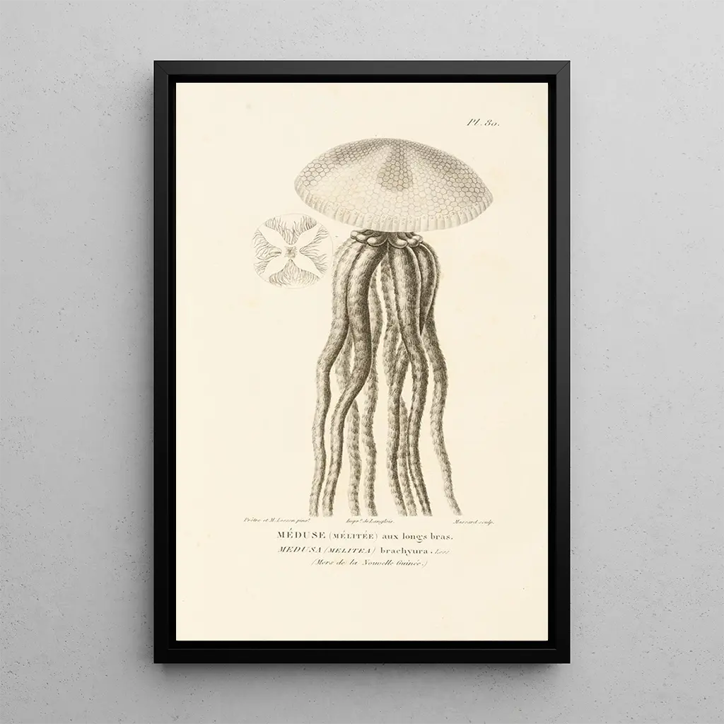 Centurie zoologique Pl79 : een eerbetoon aan de wilde fauna De kunstdruk Centurie zoologique Pl79 van René Primevère Lesson biedt een boeiend kijkje in de rijkdom van de terrestrische fauna. Met levendige kleuren en opvallende details illustreert dit kunstwerk diverse soorten in natuurlijke poses, waardoor hun intrinsieke schoonheid wordt onthuld. De graveertechniek die door Lesson wordt gebruikt, stelt in staat de textuur van vachten en veren vast te leggen, wat een levendige en meeslepende sfeer creëert. Dit doek nodigt ons uit om de dierenrijkdom te waarderen en na te denken over het behoud van onze natuurlijke omgeving. René Primevère Lesson : een geëngageerde kunstenaar voor de natuur René Primevère Lesson, actief in de 19e eeuw, wordt erkend voor zijn bijdragen aan de zoologische illustratie. Zijn passie voor de natuur en zijn betrokkenheid bij de wetenschap hebben hem ertoe gebracht werken te creëren die wetenschappelijke precisie en esthetiek combineren. Tijdens een periode van verkenning en ontdekkingen wist Lesson de geest van zijn tijd vast te leggen door vaak onbekende soorten te documenteren. Zijn illustraties zijn niet alleen kunstwerken, maar ook waardevolle hulpmiddelen voor naturalisten en wetenschappers, wat het belang van kunst in het begrijpen van de natuurlijke wereld onderstreept. Een decoratief bezit met vele voordelen De kunstdruk van Centurie zoologique Pl79 vormt een ideaal decoratief accent voor uw interieur, of het nu modern of klassiek is. De kwaliteit van de afdruk en de trouw aan de originele werken garanderen een verfijste esthetiek die de aandacht zal trekken. Door dit doek in uw inrichting te integreren, brengt u een vleugje cultuur en elegantie in uw ruimte. Of het nu in een kantoor, woonkamer of slaapkamer is, dit kunstwerk zal uw omgeving verrijken en tegelijkertijd boeiende gesprekken over biodiversiteit en kunst stimuleren.