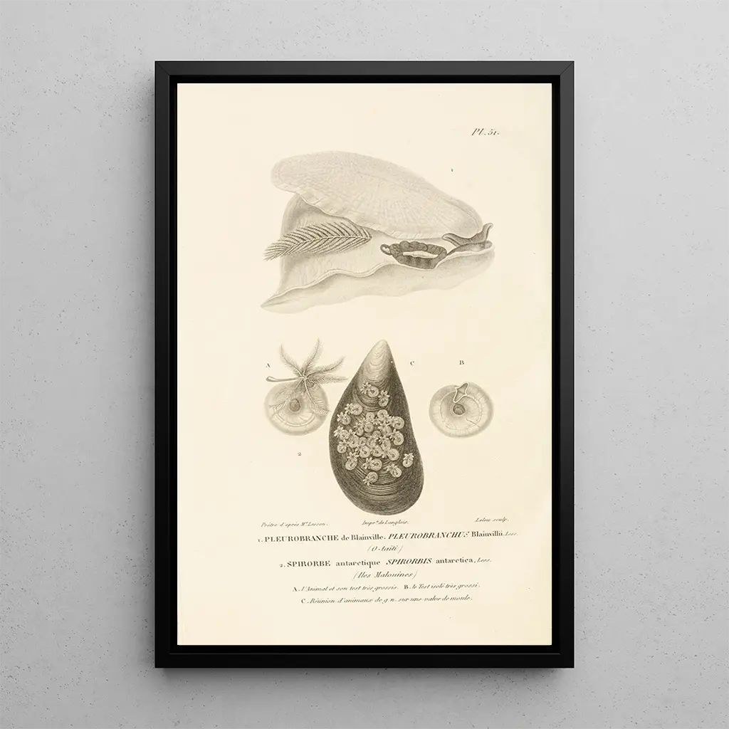 De kunstdruk van Centurie zoologique Pl51 dompelt ons onder in een rijke en kleurrijke wereld, waar elk detail zorgvuldig is waargenomen. De levendige tinten van de dieren, gecombineerd met delicate achtergronden, creëren een sfeer die zowel levendig als poëtisch is. De graveertechniek die door Lesson wordt gebruikt, maakt het mogelijk om elk specimen met opmerkelijke precisie weer te geven, waardoor de schoonheid van de fauna wordt onthuld. Dit kunstwerk nodigt uit tot een aandachtige contemplatie, waarin men de diversiteit en complexiteit van de natuur kan waarderen, terwijl men zich laat meevoeren door de magie van de kunst.