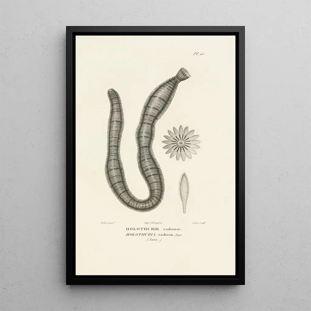 Centurie zoologique Pl15 : een viering van de biodiversiteit De kunstdruk Centurie zoologique Pl15 van René Primevère Lesson is een waar eerbetoon aan de rijkdom van de dierenwereld. Dit werk, rijk aan details, toont een verscheidenheid aan soorten, elk zorgvuldig geïllustreerd met opmerkelijke precisie. De levendige kleuren en subtiele nuances brengen nieuwe levendigheid in de afgebeelde wezens, waardoor een sfeer ontstaat die zowel educatief als poëtisch is. De fijne lijnen en de subtiele schaduwen getuigen van de technische meesterschap van de kunstenaar, en nodigen de kijker uit om onder te dompelen in een wereld waar de natuur met elegantie wordt benadrukt. René Primevère Lesson : een pionier in de zoologische illustratie René Primevère Lesson, natuurkundige en illustrator uit de 19e eeuw, wist de essentie van de fauna van zijn tijd vast te leggen. Evoluerend in een context waarin wetenschap en kunst samenkwamen, werd hij beïnvloed door de ontdekkingen van zijn tijd, vooral tijdens zijn reizen naar de eilanden van de Stille Oceaan. Zijn passie voor de zoologie weerspiegelt zich in zijn werken, die wetenschappelijke nauwkeurigheid combineren met artistieke gevoeligheid. Lesson heeft bijgedragen aan de opkomst van de naturalistische illustratie en heeft een waardevolle erfenis achtergelaten voor toekomstige generaties, zowel op artistiek als wetenschappelijk vlak. Een decoratief stuk met vele voordelen De kunstdruk van het tableau Centurie zoologique Pl15 is een decoratief stuk dat elke ruimte kan verrijken, of het nu in een woonkamer, kantoor of slaapkamer is. De kwaliteit van de afdruk en de trouw aan de originele details maken van deze doek een ideale keuze voor kunst- en natuurliefhebbers. De esthetische aantrekkingskracht van dit werk, met zijn heldere kleuren en minutieuze weergaven, maakt het een centraal decoratie-element dat nieuwsgierigheid en bewondering opwekt bij uw gasten. Gun uzelf dit unieke stuk om een vleugje elegantie en cultuur aan uw leefruimte toe te voegen.
