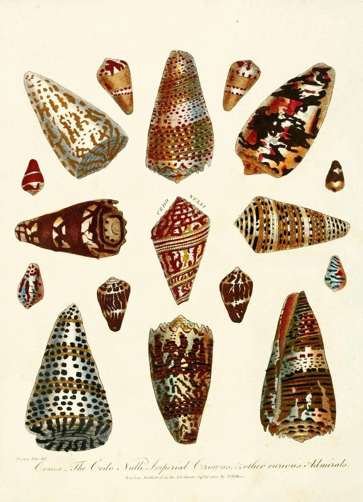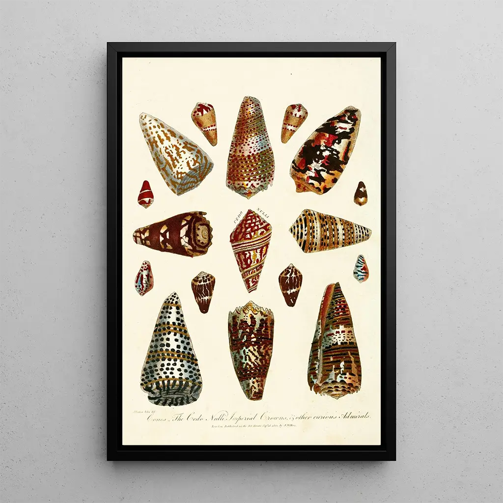 De kunstdruk van het werk "Encyclopaedia londinensis Conchyliologie Pl 05" dompelt ons onder in een fascinerende wereld waar de schoonheid van schelpen wordt benadrukt met opmerkelijke precisie. De delicate tinten van de schelpen, variërend van pastelkleuren tot fellere tonen, creëren een boeiende visuele harmonie. Elk detail wordt zorgvuldig weergegeven, wat getuigt van een minutieuze illustratietechniek die uitnodigt tot contemplatie. De sfeer die uit dit doek straalt, roept een rustgevende sereniteit op, alsof elke schelp een verhaal uit de oceaan vertelt. Dit werk is veel meer dan een eenvoudige illustratie; het is een ode aan de mariene diversiteit.