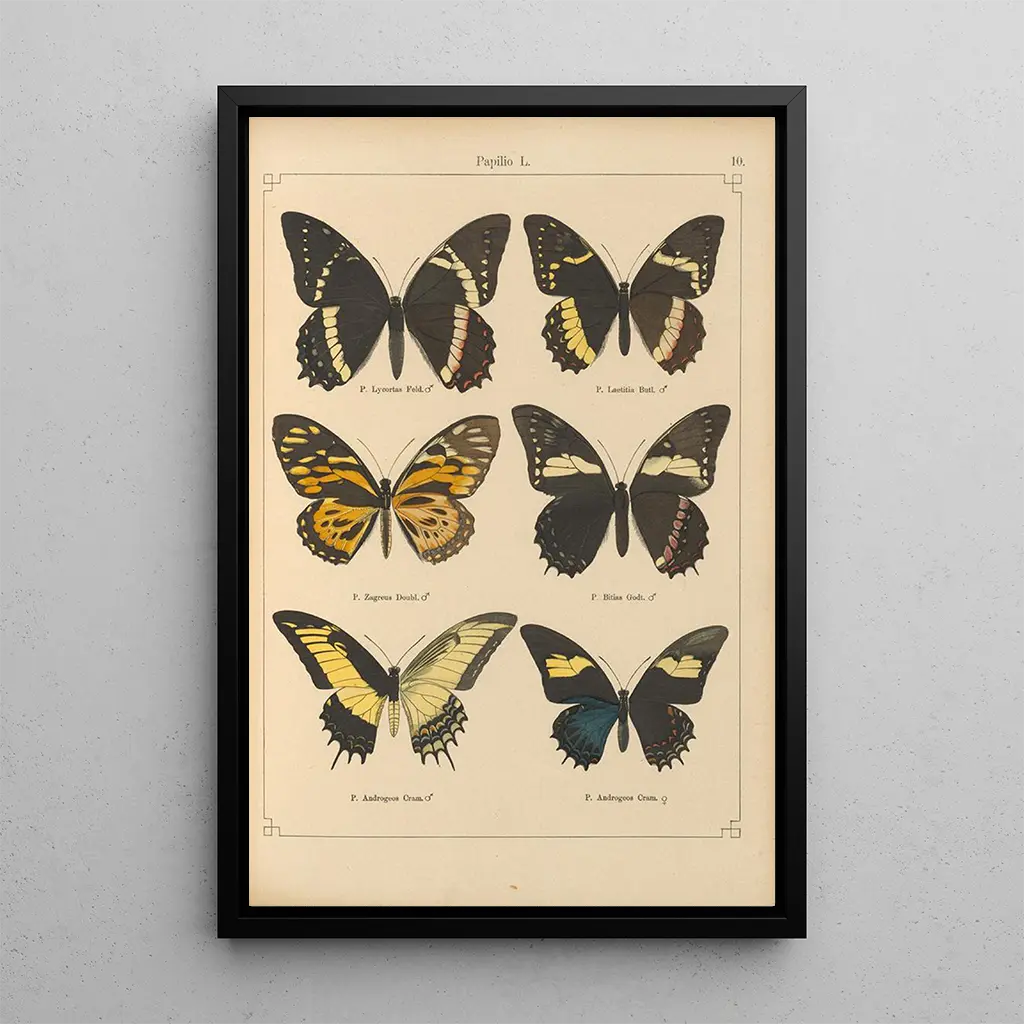 Papillons exotiques Pl010 : een ballet van kleuren en vormen De kunstdruk van Papillons exotiques Pl010 dompelt ons onder in een fascinerende wereld waar de natuur zich uitdrukt door levendige kleuren en delicate vormen. Otto Staudinger, met zijn ongeëvenaarde talent, slaagde erin deze glanzende insecten met hun kleurrijke vleugels te vereeuwigen, waardoor een sfeer van lichtheid en gratie ontstaat. Elke vlinder, minutieus gedetailleerd, lijkt klaar om op te stijgen, wat een gevoel van beweging aan de compositie toevoegt. De levendige nuances, variërend van diepe blauwen tot heldere geeltonen, mengen harmonieus, en onthullen de schoonheid en diversiteit van de natuurlijke wereld. Otto Staudinger : een meester van de entomologische illustratie Otto Staudinger, illustrator en entomoloog uit de 19e eeuw, markeerde zijn tijd met zijn nauwkeurige en artistieke weergaven van insecten. Zijn werk past binnen een context waarin wetenschap en kunst samenkomen, wat een beter begrip van biodiversiteit mogelijk maakt. Geïnspireerd door de wetenschappelijke ontdekkingen van zijn tijd, wist Staudinger rigoureusheid en creativiteit te combineren, waardoor zijn schilderijen referenties werden in het veld van de naturalistische illustratie. Zijn nalatenschap blijft voortleven, en inspireert vele kunstenaars en wetenschappers om de schoonheid van de levende wereld te verkennen. Een decoratief stuk met vele voordelen Kiezen voor de kunstdruk van Papillons exotiques Pl010 betekent kiezen voor een werk dat uw interieurdecoratie verrijkt. Of het nu in een woonkamer, kantoor of slaapkamer is, dit doek brengt een vleugje frisheid en kleur. De afdrukkwaliteit garandeert een opmerkelijke fideliteit aan de details en nuances van het originele werk, wat een onmiskenbare esthetische aantrekkingskracht biedt. Door dit stuk in uw ruimte te integreren, creëert u een gastvrije en inspirerende sfeer, terwijl u de schoonheid van de natuur en de kunst in al haar vormen viert.