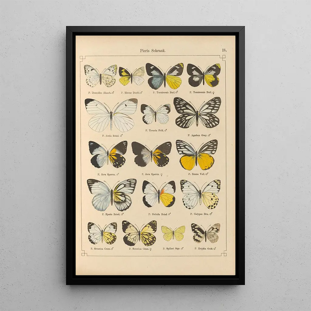 De "Papillons exotiques Pl018" van Otto Staudinger bieden een fascinerende onderdompeling in de kleurrijke wereld van insecten. Deze levendige kunstdruk benadrukt een verscheidenheid aan vlinders, elk met unieke patronen en kleuren die de rijkdom van de biodiversiteit oproepen. Het licht speelt een essentiële rol in deze compositie, waardoor de delicate nuances en texturen van de vleugels worden versterkt. De aquareltechniek, vakkundig toegepast, creëert een lichte en luchtige sfeer, die de kijker uitnodigt om elk detail te verkennen. Dit schilderij is een viering van de natuur, een eerbetoon aan de vergankelijke schoonheid van deze vliegende wezens.