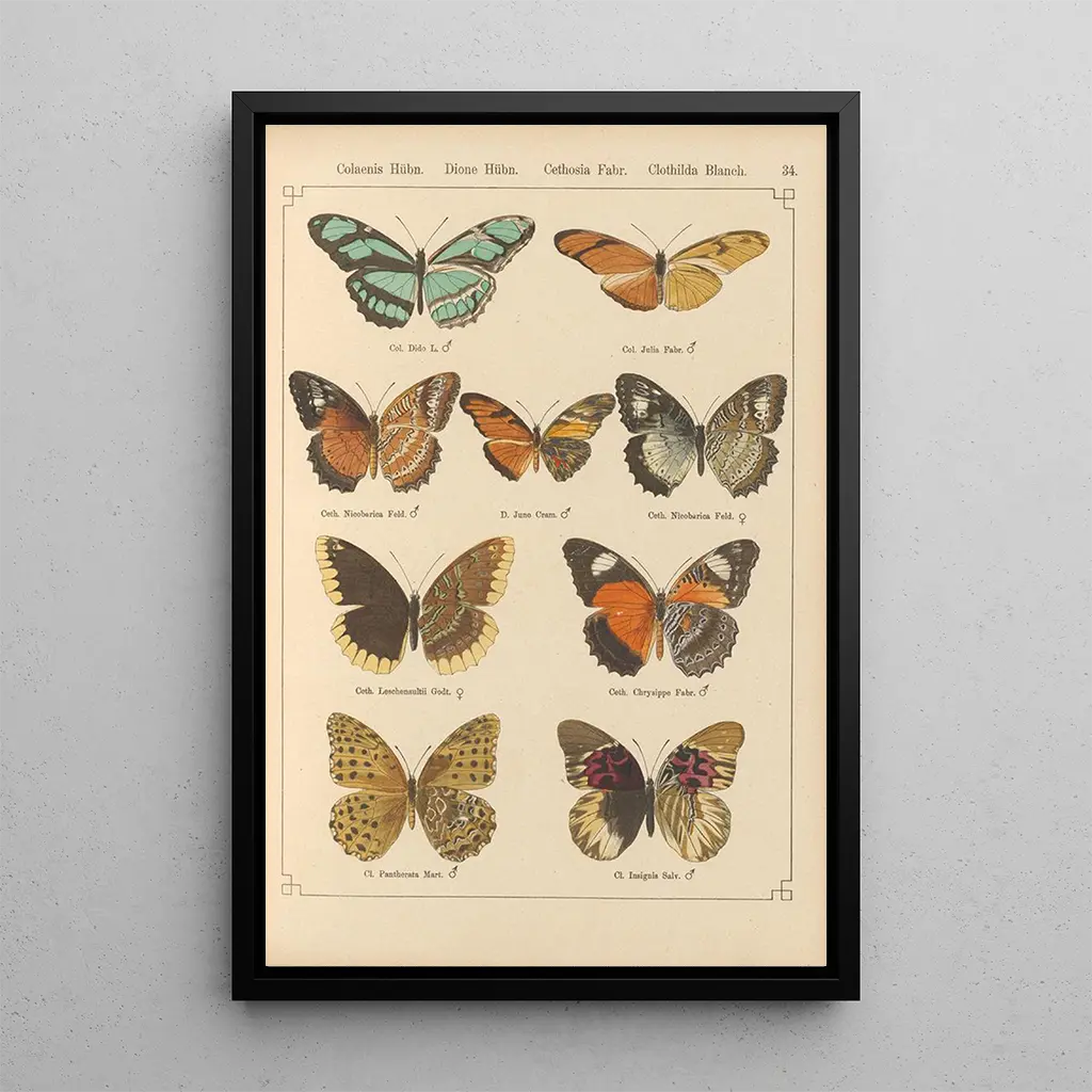 De "Papillons exotiques Pl034" van Otto Staudinger vangen de essentie van natuurlijke schoonheid door middel van een levendige en delicate compositie. De vleugels van de papillons, fijn gedetailleerd, ontvouwen zich in een scala van heldere kleuren, variërend van diepe blauwen tot heldere geeltonen. De aquareltechniek die door de kunstenaar wordt gebruikt, geeft een lichte uitstraling aan het geheel, waardoor een bijna etherische sfeer ontstaat. Elke papillon lijkt tot leven te komen, klaar om op te vliegen, terwijl de subtiele achtergrond hun pracht benadrukt. Dit kunstwerk nodigt uit tot een rustige contemplatie, een moment van verstilling waarin de natuur in al haar glorie wordt onthuld.