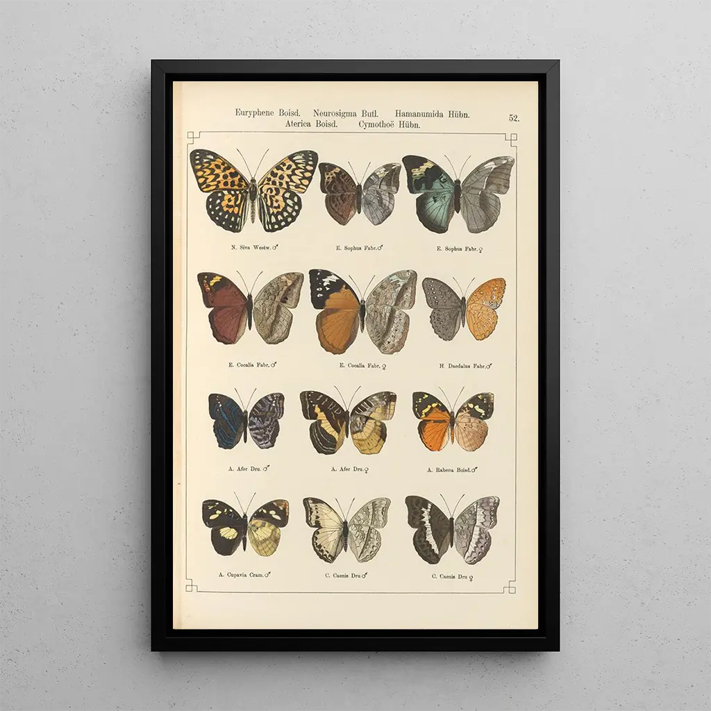 Papillons exotiques Pl052 : une danse colorée de la nature La kunstdruk de l'œuvre "Papillons exotiques Pl052" d'Otto Staudinger nous plonge dans un univers vibrant où les couleurs éclatantes se mêlent à la délicatesse des formes. Chaque papillon, minutieusement détaillé, semble prendre vie sur la toile, évoquant une légèreté et une grâce infinies. Les nuances de bleu, de jaune et de rouge s'entrelacent harmonieusement, créant une atmosphère à la fois joyeuse et apaisante. La technique de Staudinger, qui allie précision et sensibilité, permet de ressentir presque le battement d'ailes de ces créatures éphémères, nous invitant à apprécier la beauté fugace de la nature. Otto Staudinger : un pionnier de l'illustration naturaliste Otto Staudinger, actif à la fin du XIXe siècle, est reconnu pour ses contributions à l'illustration naturaliste. Influencé par les découvertes scientifiques de son époque, il a su capturer la diversité et la complexité du monde naturel à travers ses œuvres. Sa passion pour l'entomologie l'a amené à réaliser des illustrations d'une précision remarquable, faisant de lui une figure emblématique dans le domaine de l'art scientifique. Les "Papillons exotiques" témoignent de son engagement à représenter la beauté de la nature tout en éduquant le public sur la richesse de la biodiversité. Son travail reste une référence pour les artistes et les naturalistes contemporains. Une acquisition décorative aux multiples atouts La reproduction de "Papillons exotiques Pl052" est une pièce décorative idéale pour apporter une touche de fraîcheur et de couleur à votre intérieur. Que ce soit dans un salon, un bureau ou une chambre, ce tableau attire le regard et suscite l'admiration. Sa qualité d'impression garantit une fidélité aux détails originaux, permettant de profiter pleinement de l'esthétique raffinée de l'œuvre. En choisissant cette toile, vous optez pour une décoration qui allie art et nature, créant une ambiance sereine et inspirante dans votre espace de vie.