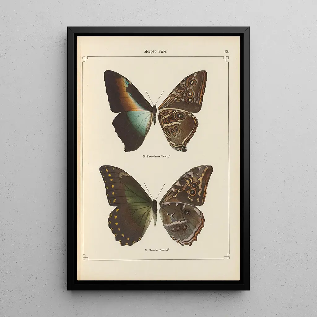 De "Papillons exotiques Pl066" van Otto Staudinger bieden een fascinerend inzicht in de biodiversiteit door een palet van levendige kleuren en delicate vormen. Elk vlinder wordt met minutieuze precisie afgebeeld, waarbij de schoonheid van natuurlijke details wordt benadrukt. De levendige nuances van blauw, groen en oranje creëren een levendige en dynamische sfeer, bijna magisch. De techniek van Staudinger, die realisme en poëzie combineert, laat de lichtheid van deze vergankelijke wezens voelen en nodigt de kijker uit om zich te verwonderen over de pracht van de natuur.