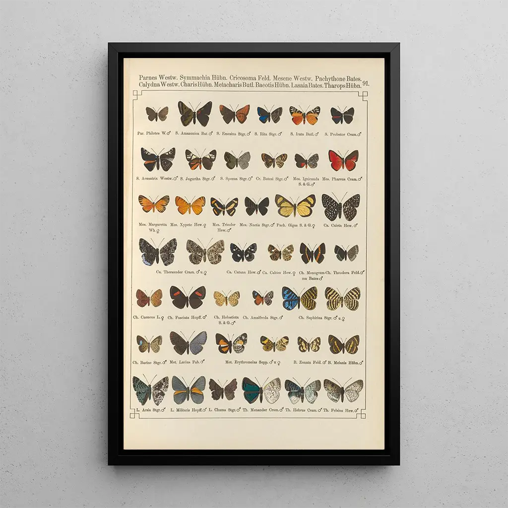 Les "Papillons exotiques Pl091" d'Otto Staudinger offrent une vision fascinante de la diversité des espèces, où chaque détail est soigneusement rendu. La composition dynamique de cette œuvre attire l'œil, tandis que les couleurs vives et contrastées évoquent une sensation de joie et de légèreté. Les papillons, figés dans des poses délicates, semblent prêts à s'envoler, créant une atmosphère vivante et enchanteresse. Grâce à une technique maîtrisée, Staudinger parvient à transmettre la beauté fugace de ces insectes, invitant le spectateur à s'émerveiller devant la splendeur de la nature.
