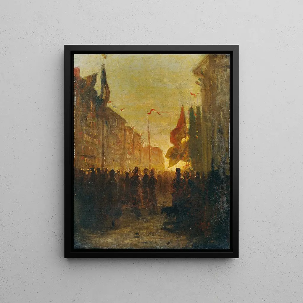 Reproductie Vlaggen voor feesten - Alois Schönn – Boeiende introductie In het fascinerende universum van de kunst slagen sommige werken erin de geest van een tijdperk vast te leggen, emoties op te roepen en diepe reflecties te stimuleren. "Vlaggen voor feesten - Alois Schönn" is een van die creaties die, door zijn levendigheid en durf, ons meeneemt naar een wereld waar viering en vreugde verweven zijn met reflectie. Dit werk, een waar symbool van het feest, nodigt ons uit om de rijkdom van culturele tradities te verkennen terwijl we ondergedompeld worden in een palet van heldere kleuren. Door dynamische patronen en vibrerende vormen biedt Schönn een jubelende visie die resoneert met ons verlangen naar ontsnapping en gezelligheid. Stijl en uniekheid van het werk De stijl van Alois Schönn wordt gekenmerkt door een gedurfde en innovatieve aanpak die de artistieke conventies uitdaagt. "Vlaggen voor feesten" onderscheidt zich door het gebruik van heldere kleuren en gedurfde composities, waardoor een feestelijke en lichte sfeer ontstaat. De vlaggen, symbolen van samenkomst en viering, zweven gracieus, wat een gevoel van beweging en leven oproept. De manier waarop Schönn speelt met licht en schaduw geeft diepte aan het werk, terwijl de gestileerde vormen van de vlaggen bijna lijken te dansen op het doek. Deze mix van dynamiek en sereniteit maakt van dit stuk een echt meesterwerk dat de blik trekt en de geest boeit. De kunstenaar en zijn invloed Alois Schönn is een kunstenaar wiens werk past binnen een rijke traditie, maar zich onderscheidt door zijn originaliteit. Geïnspireerd door hedendaagse artistieke bewegingen slaagt hij erin elementen uit de populaire cultuur te integreren in zijn creaties, terwijl hij een unieke artistieke gevoeligheid behoudt. Zijn werk staat in een voortdurende dialoog met artistieke tradities, terwijl hij streeft naar vernieuwing van de visuele taal. Schönn verkent universele thema's zoals vreugde, gemeenschap en viering, waardoor hij een breed publiek weet te raken. Zijn invloed is niet alleen voelbaar in zijn eigen werken, maar ook in die van andere kunstenaars die zich laten inspireren door zijn vermogen om traditie en moderniteit te combineren. Een uitzonderlijke muurschildering ondertekend door Artem