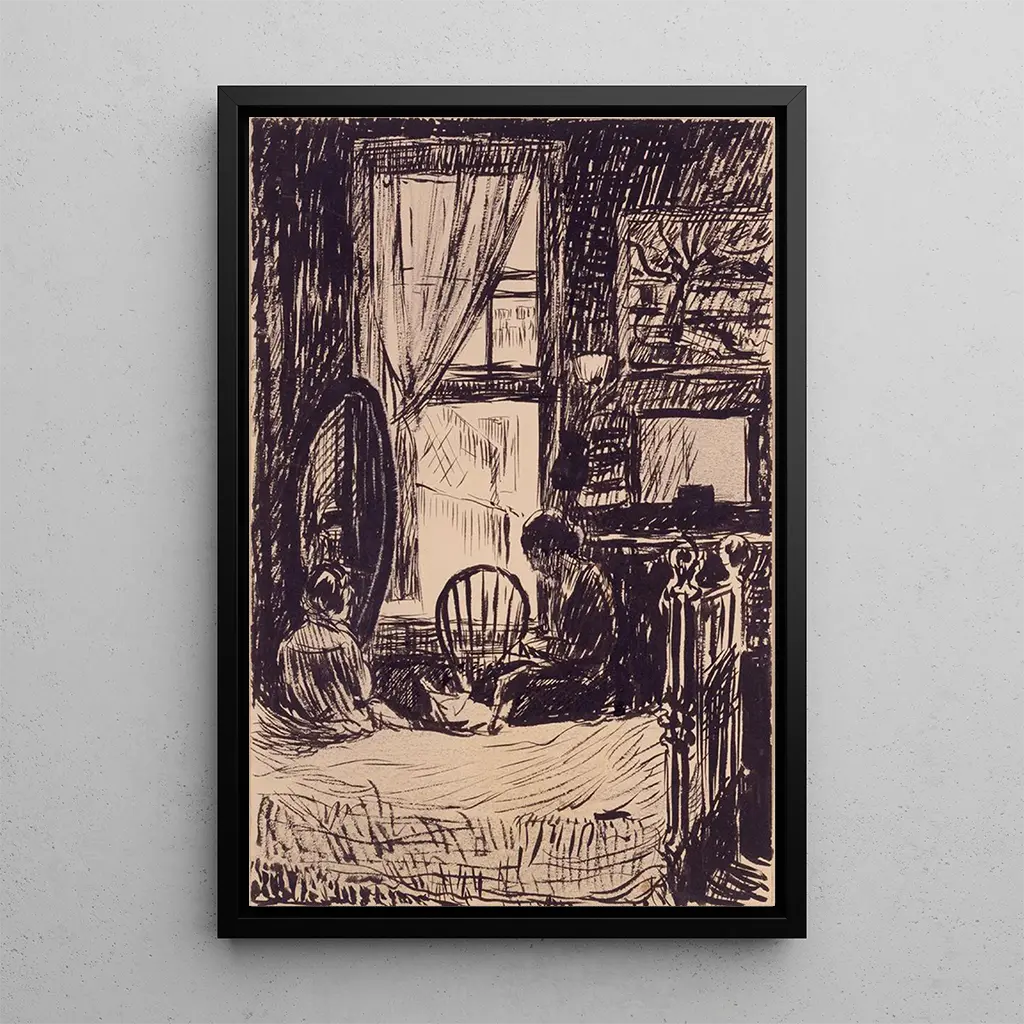 De kunstdruk "Figures devant la fenêtre" van Henry Lyman Saen schetst een warme en uitnodigende sfeer. De personages, elegant gekleed, lijken verdiept in een levendig gesprek, terwijl het natuurlijke licht de kamer binnenstroomt door het raam. De zachte kleuren en pasteltonen creëren een serene, bijna dromerige ambiance die de kijker uitnodigt om zich onder te dompelen in dit moment van leven. De techniek van Saen, die realisme en impressionisme combineert, geeft deze doek een emotionele diepte, waardoor elk detail levendig en tastbaar wordt.