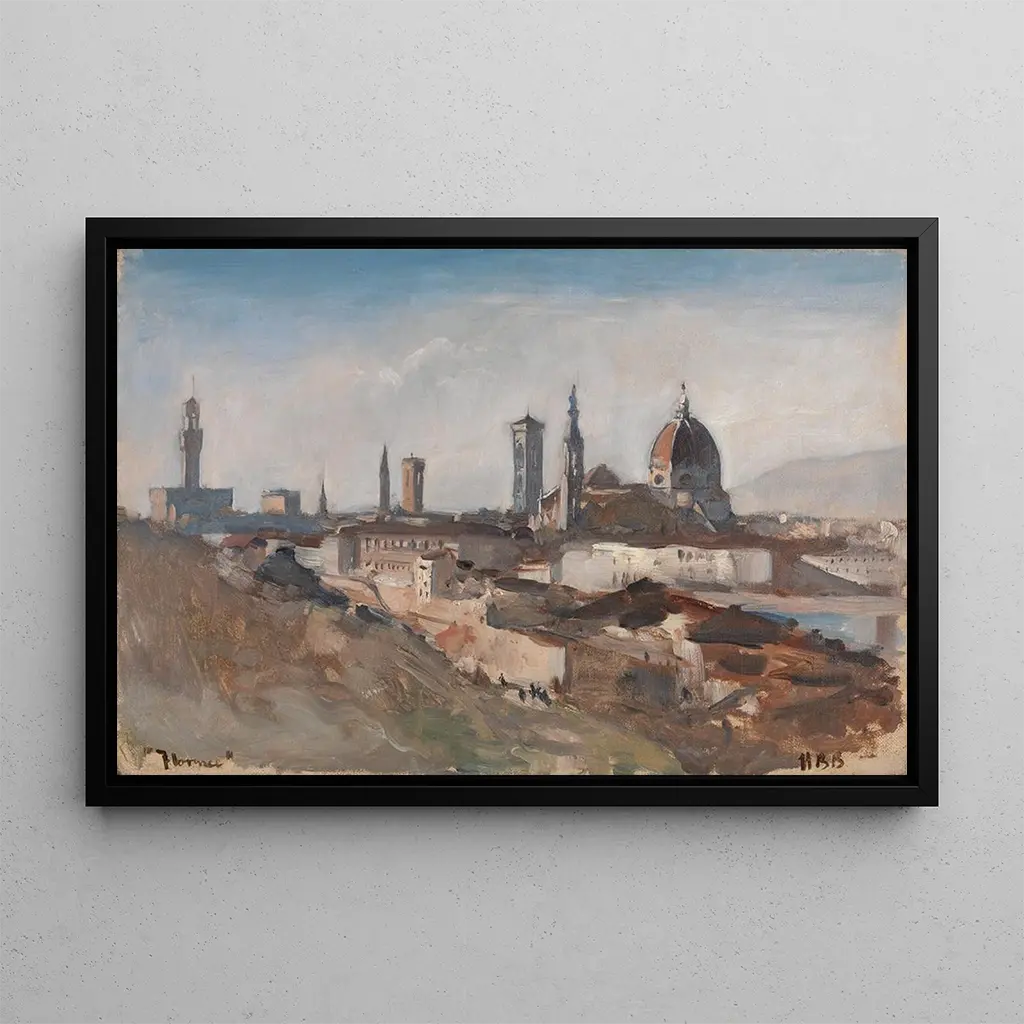 Florence : een ode aan de Italiaanse schoonheid "Florence", een iconisch kunstdruk van Hercules Brabazon Brabazon, vangt de essentie van de Italiaanse stad, beroemd om haar architectuur en artistieke rijkdom. De levendige tinten en het spel van licht roepen de magie op van de straatjes van Florence, terwijl de architectonische details met opmerkelijke precisie worden weergegeven. De dynamische compositie, waarin de hemel zich mengt met de silhouetten van de gebouwen, brengt de kijker naar het hart van deze historische metropool. Elk element van het doek lijkt te vibreren van een eigen leven, en nodigt uit om de wonderen van Florence te verkennen door de ogen van de kunstenaar. Hercules Brabazon Brabazon : een geïnspireerde reiziger en kunstenaar Hercules Brabazon Brabazon, actief in de 19e eeuw, is een Britse schilder wiens werken vaak worden gekenmerkt door zijn reizen door Europa. Geïnspireerd door de impressionistische beweging, probeert hij het licht en de sfeer van de plaatsen die hij bezoekt vast te leggen. Zijn passie voor Italië, en vooral voor Florence, weerspiegelt zich in zijn schilderijen, waarin hij de emotie van een vluchtig moment weet over te brengen. Brabazon heeft zijn technische vaardigheden weten te combineren met artistieke gevoeligheid, waardoor hij een belangrijke vertegenwoordiger van zijn tijd is geworden. Zijn werken blijven inspireren en verwonderen, en getuigen van de tijdloze schoonheid van Florence. Een decoratief kunstdruk met vele voordelen De kunstdruk van "Florence" is een waardevolle aanvulling op elke kunstcollectie en brengt een vleugje elegantie in uw leefruimte. Of het nu in een woonkamer, kantoor of slaapkamer is, deze kunstdruk weet de aandacht te trekken en bewondering op te wekken. De afdrukkwaliteit garandeert een trouwheid aan de kleuren en details van het originele werk, en creëert een warme en uitnodigende sfeer. Met zijn onmiskenbare charme zal deze kunstdruk uw interieur verrijken en u elke dag meenemen naar de zonnige straatjes van Florence.