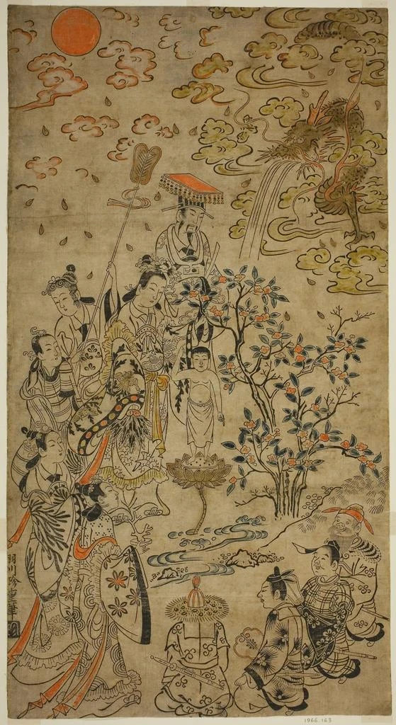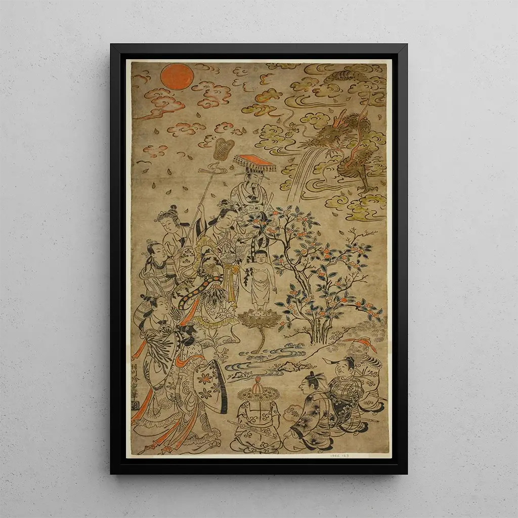 Schilderij Naissance du Bouddha - Hanegawa Chinchō | Kunstdruk