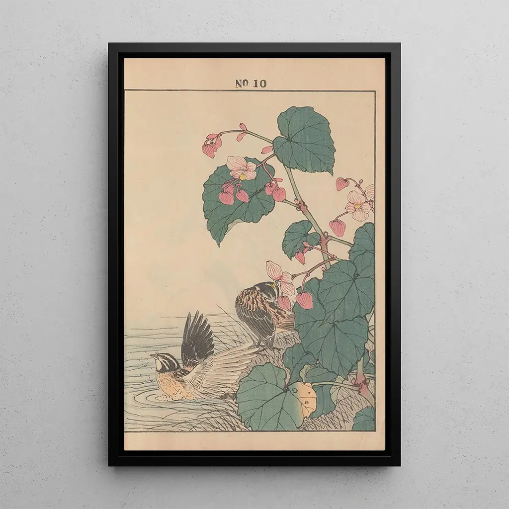 De kunstdruk van Keinen kach gafu Pl012 dompelt ons onder in een wereld waar de natuur gevierd wordt met oneindige delicatesse. De zachte pastelkleuren verweven zich om een rustgevende sfeer te creëren, terwijl de techniek van de Japanse ukiyo-e print elk detail van de bloemen en vogels benadrukt. Het werk roept een perfecte harmonie op tussen mens en omgeving, uitnodigend tot contemplatie en sereniteit. De bloemmotieven, typisch voor de Japanse kunst, worden met opmerkelijke precisie weergegeven, en bieden een blik op de vergankelijke schoonheid van de natuur.