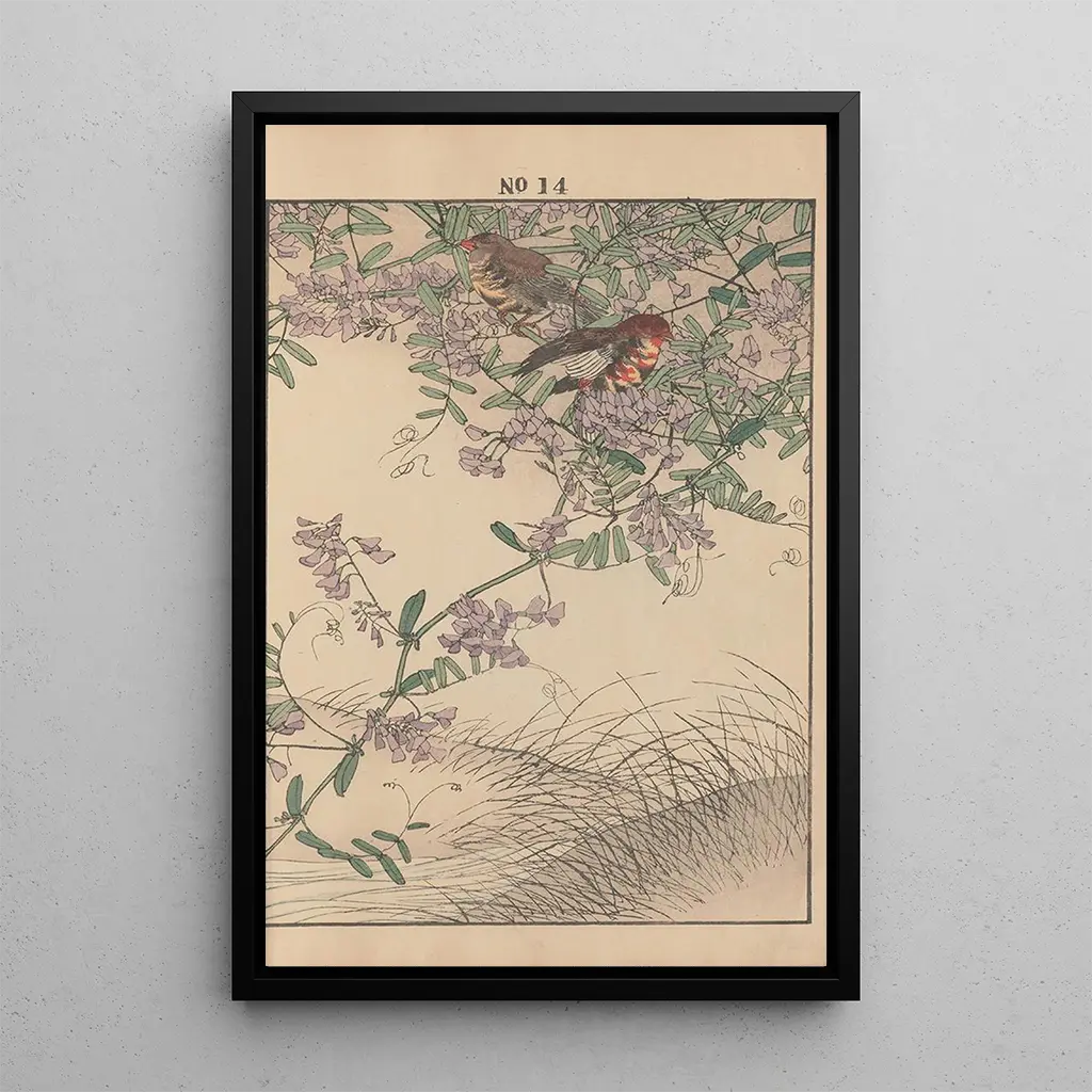 De kunstdruk Keinen kach gafu Pl016 van Imao Keinen is een werk dat uitnodigt om onder te dompelen in een wereld waar de natuur bloeit onder een delicate penseelstreek. De zachte kleuren en bloemmotieven verweven zich gracieus, waardoor een rustgevende sfeer ontstaat. De techniek van zijde schilderen, typisch voor die periode, geeft deze doek een lichtheid en vloeiendheid die de blik boeien. Elk detail, van de bloemblaadjes tot de bladeren, wordt met minutieuze precisie weergegeven, waardoor dit werk een ware ode is aan de vergankelijke schoonheid van de natuur.