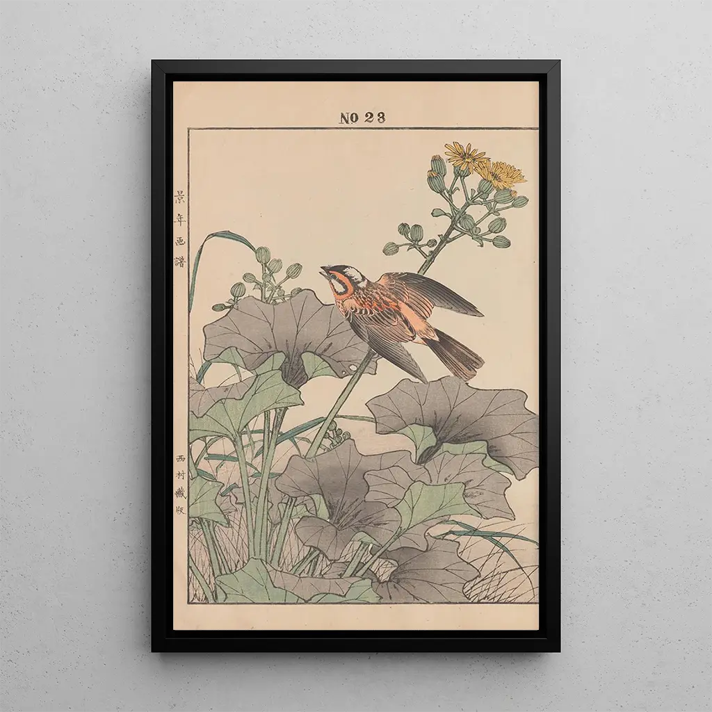 De kunstdruk van Keinen kach gafu Pl147 dompelt ons onder in een delicate wereld waar de schoonheid van bloemen en vogels harmonieus samenkomen. De pastelkleuren, zacht en rustgevend, creëren een serene sfeer, terwijl de techniek van de Japanse houtsnede, met zijn vloeiende en precieze lijnen, elk detail tot leven brengt. De bloemmotieven, typisch voor de Japanse kunst, roepen een stille contemplatie op en nodigen de kijker uit om stil te staan en de kwetsbaarheid van de natuur te waarderen. Dit schilderij, een ware ode aan de vergankelijke schoonheid, herinnert ons aan het belang van het genieten van de vluchtige momenten in het leven.