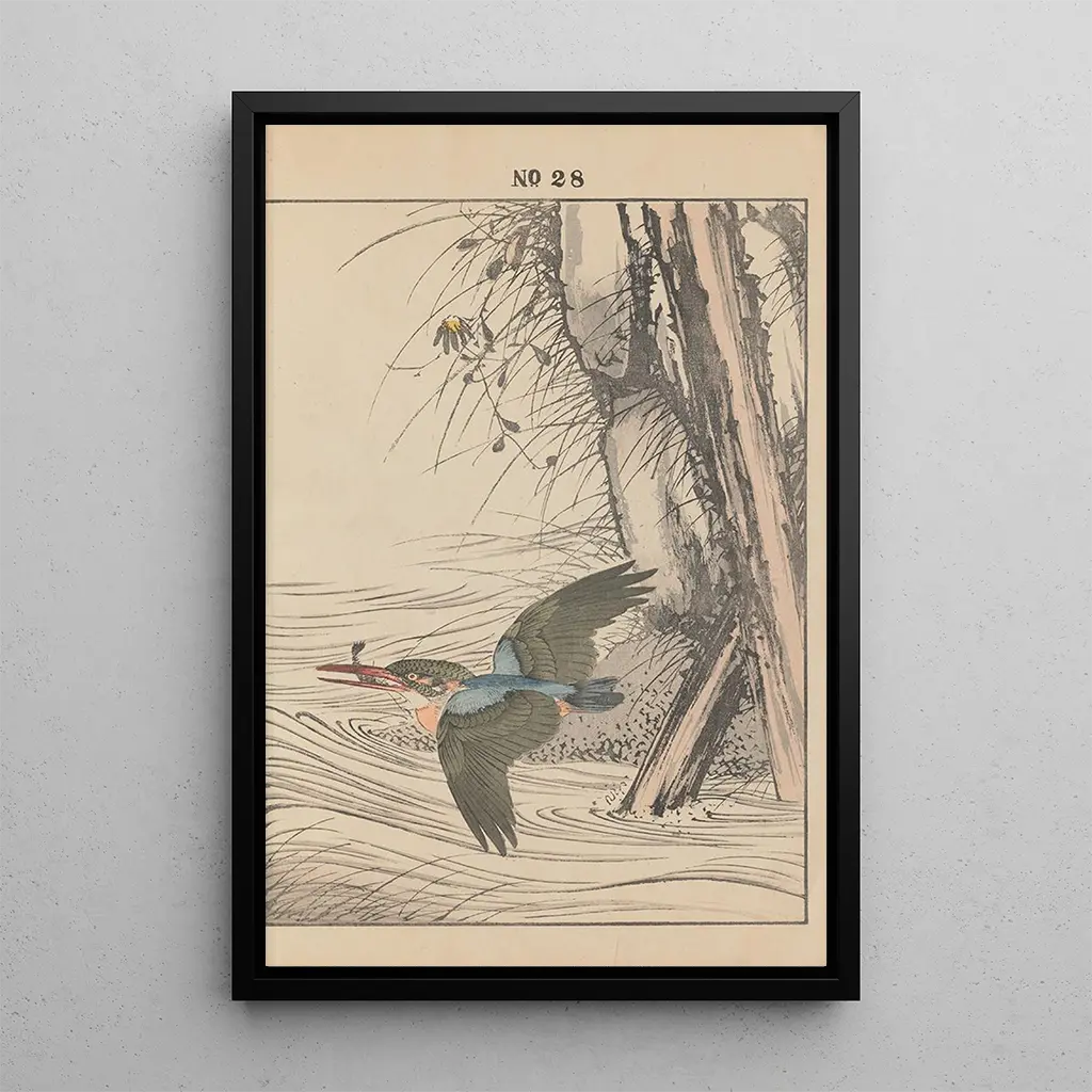 De kunstdruk van het werk Keinen kach gafu Pl156 roept een wereld op waar natuur en kunst samenkomen in een delicate dans. De levendige kleuren en bloemmotieven verweven zich om een rustgevende en contemplatieve sfeer te creëren. De techniek van de Japanse houtsnede, met zijn minutieuze details, laat de lichtheid van de bloemblaadjes en de vloeiendheid van de lijnen voelen. Elk element van de compositie lijkt een verhaal te vertellen, en nodigt de kijker uit om onder te dompelen in een universum van sereniteit en schoonheid. De rijkdom van nuances en de precisie van de lijnen maken van dit doek een waar meesterwerk van bloemkunst.