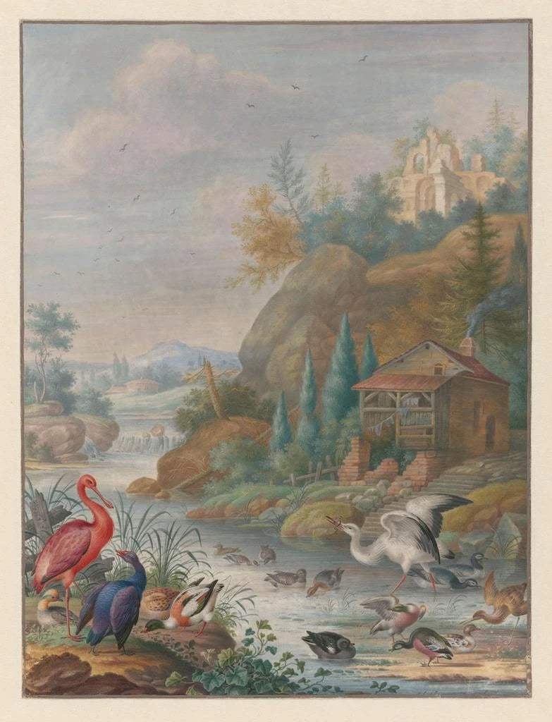 Gevogelte aan de rand van een bergbeek - Herman Henstenburgh