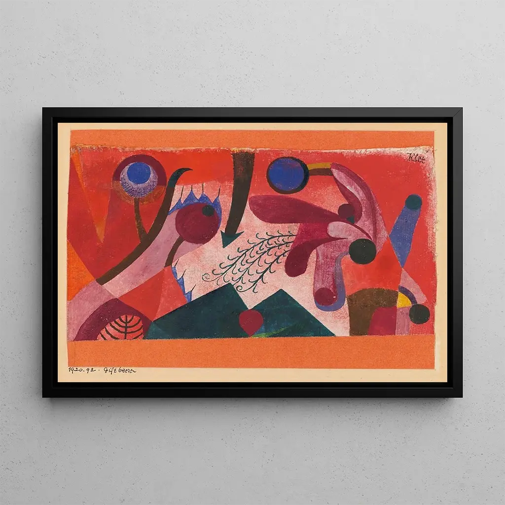 Paul Klee, Zwitserse kunstenaar geboren in 1879, wordt erkend om zijn unieke benadering van kleur en vorm. Geïnspireerd door het kubisme, het expressionisme en de volkskunst, heeft Klee een onderscheidende stijl ontwikkeld die de artistieke grenzen overstijgt. Actief in de eerste helft van de 20e eeuw, was hij lid van het Bauhaus, waar hij experimenteerde met kleurentheorie en kunstpedagogiek. Zijn werken, vaak doordrenkt met poëzie en mysterie, weerspiegelen een diep begrip van de menselijke ziel en de natuur. Deze kunstdruk van "Giftige bessen" getuigt van zijn blijvende nalatenschap in de moderne kunst.