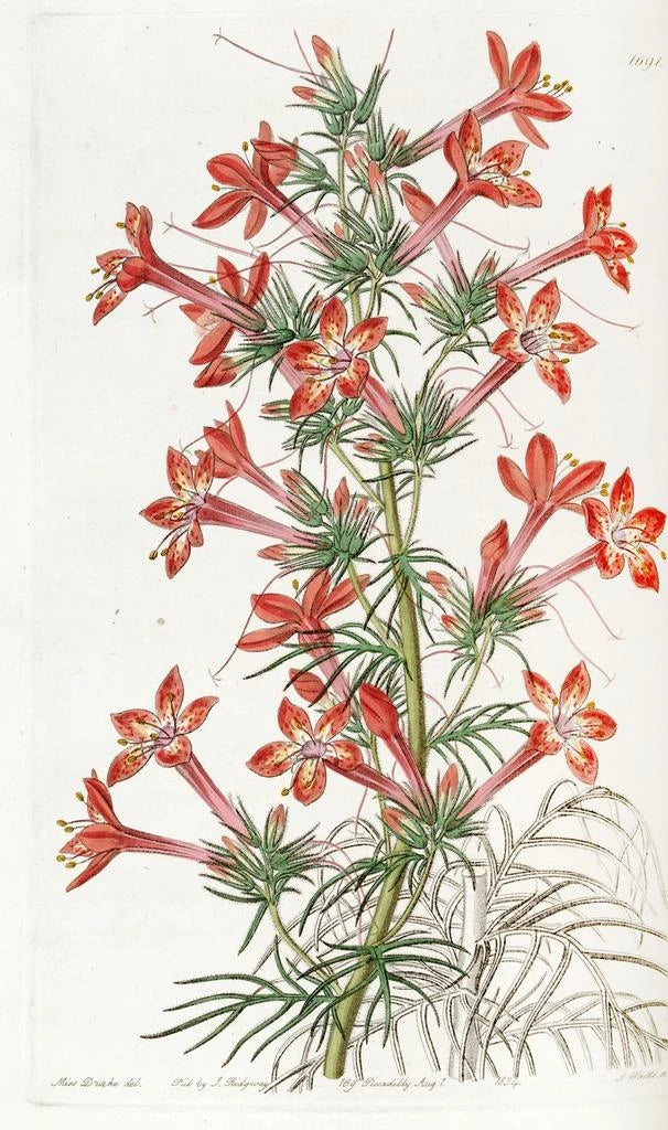 Sydenham Edwards, een beroemde kunstenaar uit de 19e eeuw, heeft de geschiedenis van de botanische illustratie gevormd door zijn artistieke en wetenschappelijke aanpak. Geïnspireerd door de botanische ontdekkingen van zijn tijd, wist hij precisie en esthetiek te combineren in zijn werken. De kunstdruk van de Gilia à pied de corbeau illustreert perfect zijn talent, door de essentie van deze plant vast te leggen en tegelijkertijd de botanische realiteit te respecteren. In een tijd waarin wetenschappelijke illustratie aan populariteit won, heeft Edwards bijgedragen aan het toegankelijk maken van botaniek voor een breed publiek. Zijn nalatenschap blijft voortbestaan, en viert de schoonheid van de natuur door middel van kunst.