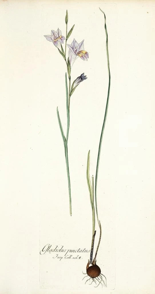 Schilderij Gladiolus punctatus - Nikolaus Joseph Freiherr von Jacquin | Kunstdruk