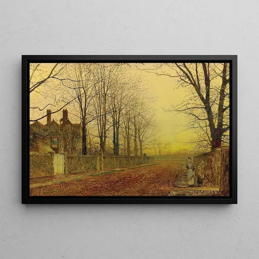 John Atkinson Grimshaw, actief in de 19e eeuw, is beroemd om zijn nachtlandschappen en natuuropnames. Geïnspireerd door de prerafaëlieten, ontwikkelde hij een unieke stijl die realisme en romantiek combineert. Grimshaw verkende vaak de thema's licht en atmosfeer, en creëerde werken die een diepe verbinding met de natuur uitdrukken. Zijn werk wordt ook gekenmerkt door een bijzondere aandacht voor details, wat hem onderscheidde in de wereld van de Victoriaanse kunst. Via Gloire d'automne biedt hij een poëtische visie op de natuur, en versterkt hij het belang ervan in de geschiedenis van de Britse kunst.