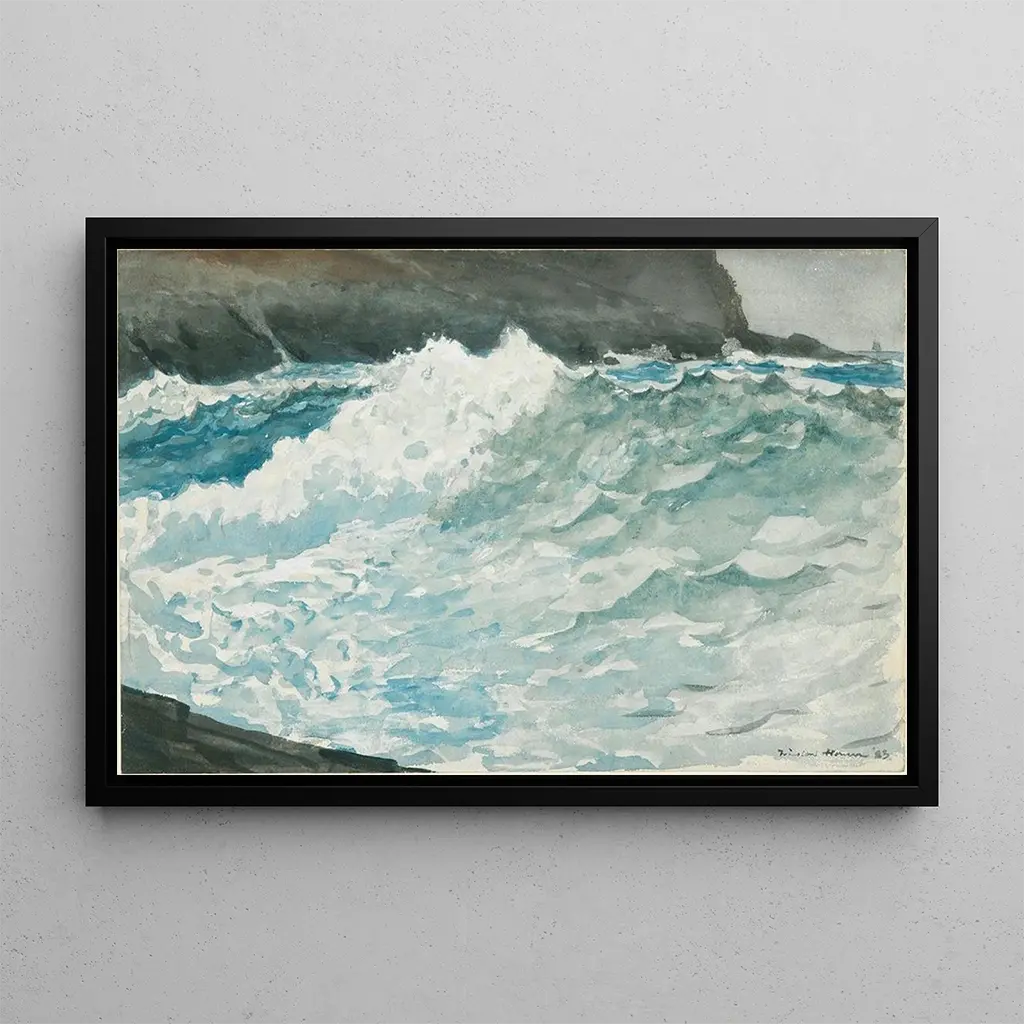 Winslow Homer, een iconische figuur van de Amerikaanse kunst van de 19e eeuw, wordt erkend om zijn krachtige weergaven van de natuur en het maritieme leven. Geïnspireerd door zijn reizen en zijn interesse in het buitenleven, wist hij de essentie van Amerika vast te leggen in zijn werken. Zijn stijl, die evolueert van realisme naar een meer impressionistische benadering, getuigt van zijn verlangen om de waarheid van landschappen en menselijke emoties te representeren. "Vagues, Prouts Neck" is een perfect voorbeeld van zijn talent om de ruwe schoonheid van de natuur te vereeuwigen, terwijl hij thema's van eenzaamheid en kracht oproept.