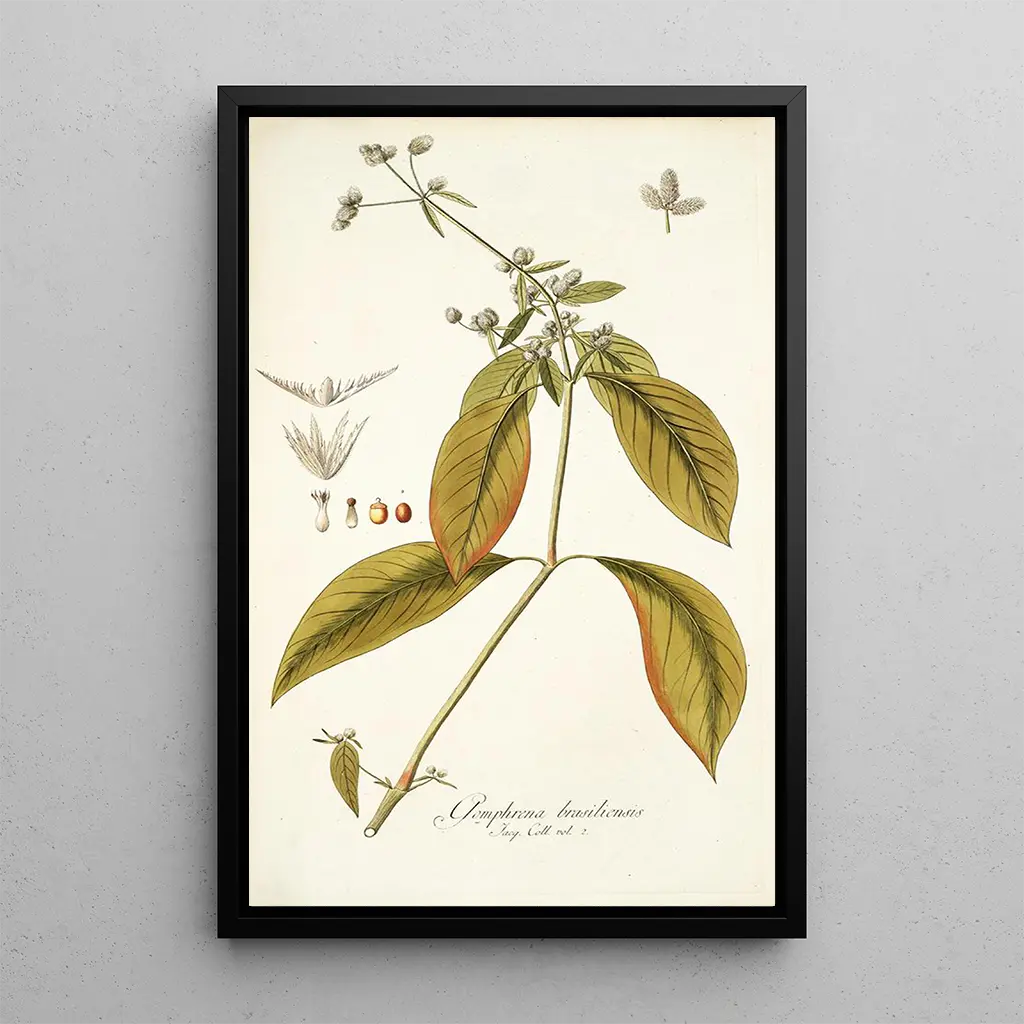 De kunstdruk Gomphrena brasiliensis van Nikolaus Joseph Freiherr von Jacquin is een viering van de bloemrijke biodiversiteit. Dit boeiende schilderij benadrukt de bloemen van Gomphrena, met hun heldere tinten roze en violet, die bijna lijken te pulseren op het doek. De aquareltechniek, beheerst door Jacquin, maakt het mogelijk om de zachte en fluweelachtige textuur van de bloemblaadjes weer te geven, terwijl er een opvallend contrast ontstaat met het groen van de bladeren. De algemene sfeer van het werk roept een vreugde van leven op, een uitnodiging om de eenvoudige en authentieke schoonheid van de natuur te waarderen.