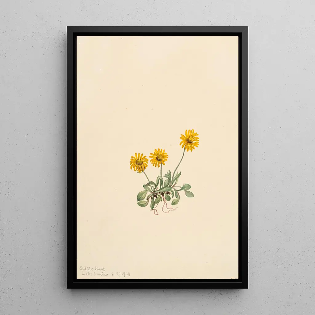 Vergerette dorée Erigeron aureus : een ode aan de wilde natuur De kunstdruk van de Vergerette dorée, of Erigeron aureus, dompelt ons onder in een levendig bloemrijk universum. De delicate nuances van geel en groen vermengen zich harmonieus, en roepen het licht van de zon op dat door de bladeren filtert. De aquareltechniek die door Mary Vaux Walcott wordt gebruikt, geeft aan dit werk een lichtheid en transparantie die de essentie van de plant vastleggen. De sfeer die uit dit doek straalt, nodigt uit tot contemplatie en verwondering over de eenvoudige maar indrukwekkende schoonheid van de natuur. Mary Vaux Walcott : een pionier in de botanische kunst Mary Vaux Walcott, actief in het begin van de 20e eeuw, is een iconische figuur in de Amerikaanse botanische kunst. Geïnspireerd door de naturalistische bewegingen van haar tijd, wijdde ze zich aan de studie en weergave van inheemse planten uit Noord-Amerika. Haar werken, vaak gemaakt tijdens haar verkenningen in de Rocky Mountains, getuigen van een grote nauwkeurigheid en een diep respect voor de natuur. Als lid van de Amerikaanse Vereniging voor Botanica heeft ze bijgedragen aan de erkenning van botanische kunst als een volwaardige discipline, die wetenschap en esthetiek combineert. Een decoratief kunstwerk met vele voordelen Deze kunstdruk van de Vergerette dorée is een ideale keuze om uw interieur te verfraaien, of het nu in een woonkamer, kantoor of slaapkamer is. Het palet van warme kleuren en de getrouwe weergave van de flora brengen een vleugje frisheid en rust in elke ruimte. De kwaliteit van de afdruk garandeert duurzaamheid en een nauwkeurige weergave van de details, zodat u dagelijks van dit werk kunt genieten. Door voor dit schilderij te kiezen, maakt u niet alleen een esthetische keuze, maar brengt u ook de schoonheid van de natuur in uw dagelijks leven.