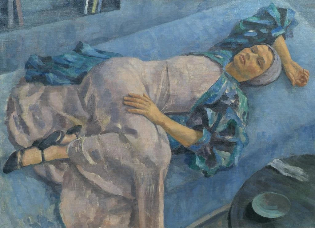 Grete Gamerith op een blauwe bank - Walther Gamerith
