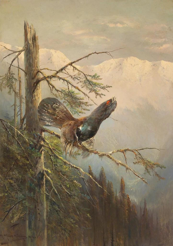 Duitse kunstenaar uit de 19e eeuw, Moritz Müller staat bekend om zijn realistische weergaven van wilde dieren, getuigend van een diepe bewondering voor de natuur. Geïnspireerd door de romantische beweging, probeert hij de essentie van zijn onderwerpen vast te leggen, vaak door hun natuurlijke gedrag te benadrukken. Zijn werk past in een tijd waarin het observeren van de fauna essentieel werd voor kunstenaars, en weerspiegelt een groeiende interesse in natuurbehoud en de schoonheid van de natuurlijke wereld. De kunstdrukken van Müller, waaronder de grote bosuil in parade, zijn niet alleen getuigenissen van zijn talent, maar ook reflecties op de relatie tussen mens en natuur.