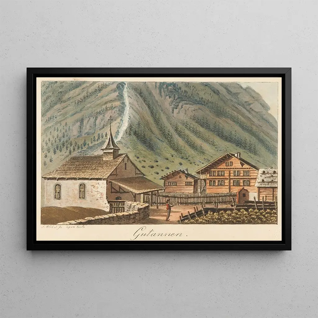 Gutannen : een betoverend landschap in het hart van de Alpen In dit kunstdruk neemt Jakob Samuel Weibel ons mee naar een adembenemend Alpenlandschap. Het doek, doordrenkt met licht, onthult majestueuze bergen, weelderige valleien en een stralende blauwe hemel. De levendige kleuren en de minutieuze details getuigen van een beheersde techniek, waarbij elke penseelstreek de essentie van de natuur lijkt vast te leggen. De rustige sfeer die uit deze kunstdruk straalt, nodigt uit tot contemplatie en biedt een ontsnapping aan de drukte van alledag. De nuances van groen en blauw mengen harmonieus, waardoor een visuele symfonie ontstaat die het oog betovert en de geest kalmeert. Jakob Samuel Weibel : een meester van het Zwitserse landschap Geboren in Zwitserland, wordt Jakob Samuel Weibel erkend om zijn landschappen die de natuurlijke schoonheid van zijn geboorteland vieren. Actief in de 19e eeuw, past hij binnen de romantische beweging, waar de uitdrukking van emoties door de natuur centraal staat. Geïnspireerd door de grote meesters van zijn tijd, ontwikkelt Weibel een unieke stijl die precisie en poëzie combineert. Zijn werken, vaak geïnspireerd door Alpenlandschappen, getuigen van een diepe verbondenheid met de natuur en een wens om de sereniteit die zij biedt over te brengen. Zijn artistieke nalatenschap blijft kunstenaars en liefhebbers van landschappen inspireren. Een decoratief kunstdruk met vele voordelen De kunstdruk van Gutannen is een decoratief stuk dat elke ruimte kan verfraaien, of het nu een woonkamer, kantoor of slaapkamer is. De afdrukkwaliteit garandeert een opmerkelijke fideliteit aan de details van het originele werk, waardoor elke nuance en textuur gewaardeerd kan worden. Door dit schilderij in uw interieur te integreren, brengt u een vleugje elegantie en sereniteit in uw woning. De esthetische aantrekkingskracht en het vermogen om emoties op te roepen maken het een ideale keuze voor wie een rustgevende en inspirerende sfeer thuis wil creëren.