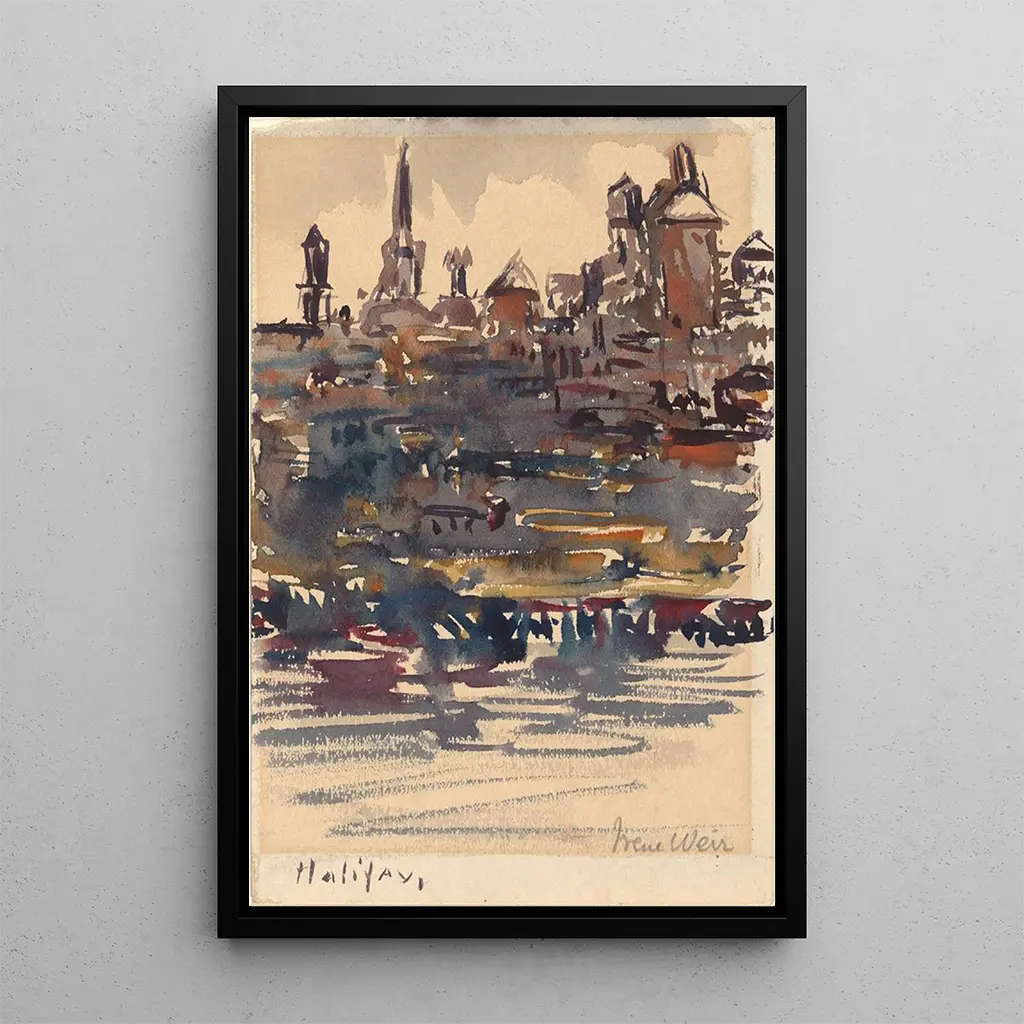 Halifax : een venster op de bruisende haven. De kunstdruk van "Halifax" door Irene Weir dompelt ons onder in de bedrijvigheid van een drukke haven. De levendige tinten blauw en geel illustreren de beweging van boten en de animatie van de kades. De olieverftechniek op doek maakt het mogelijk om de reflecties van het licht op het water weer te geven, waardoor een bijna levendige dimensie aan de scène wordt toegevoegd. Dit schilderij roept niet alleen de schoonheid van het maritieme landschap op, maar ook de voelbare energie van een bloeiende havenstad, die de kijker uitnodigt om haar diepten te verkennen. Irene Weir : een artieste in dienst van het licht. Irene Weir, een belangrijke figuur uit het begin van de 20e eeuw, behoort tot de impressionistische stroming, waarin licht een centrale rol speelt. Geïnspireerd door haar reizen en de natuur die haar omringt, slaagt ze erin om vluchtige momenten om te zetten in tijdloze kunstwerken. "Halifax" is emblematisch voor haar stijl, waarin elke penseelstreek lijkt het huidige moment vast te leggen. Haar artistieke aanpak, die nauwkeurige observatie combineert met persoonlijke interpretatie, geeft haar een unieke plaats in de kunstgeschiedenis, hoewel haar werken minder bekend blijven dan die van sommige van haar tijdgenoten. Een decoratieve aankoop met vele voordelen. De kunstdruk van "Halifax" is een perfecte keuze om je interieur te verrijken, of het nu in een werkruimte of een woonkamer is. De afdrukkwaliteit garandeert een opmerkelijke trouw aan de heldere kleuren en de details van het originele werk. Dit schilderij brengt een dynamische en levendige toets aan je omgeving, terwijl het de interesse en nieuwsgierigheid van bezoekers wekt. Door deze doek in je ruimte te integreren, creëer je een warme en inspirerende sfeer, en eren we tegelijkertijd de kunst van Irene Weir.